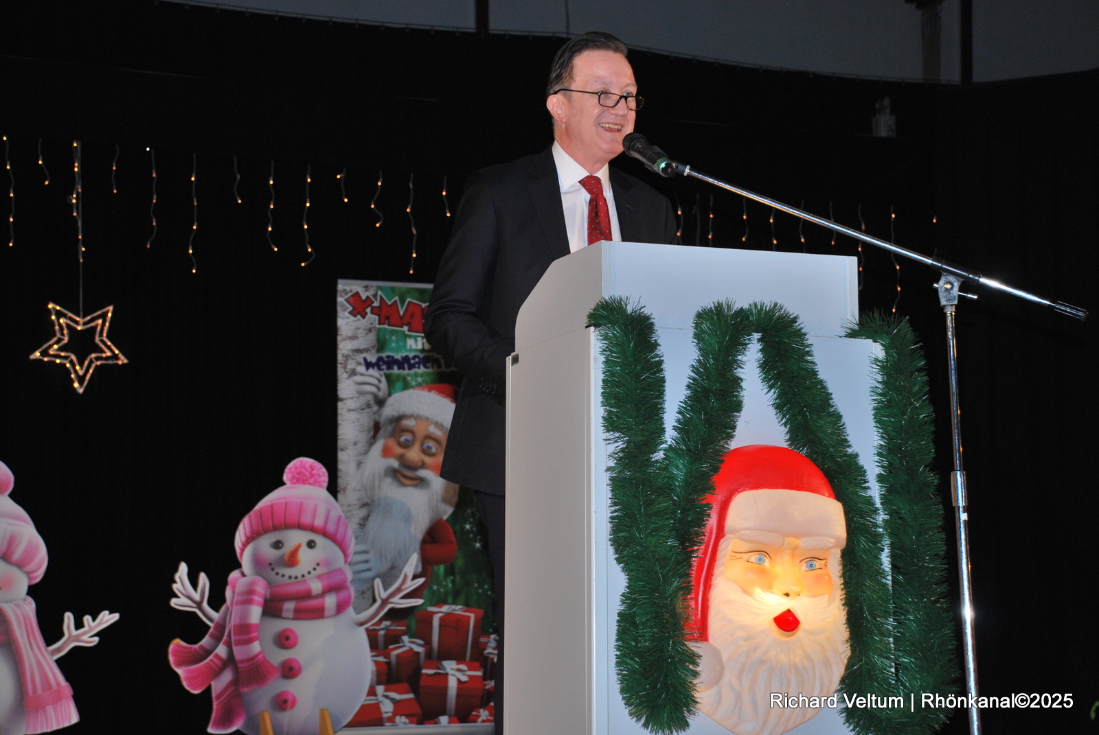 Moderator Jan Kunath führte erneut gerne ehrenamtlich durch das Weihnachtsprogramm. Besonders erfreulich war die Teilnahme zweier Jubilare: Der 100-jährige Albrecht Rüdiger sowie der 90-jährige Peter Rehfeld nahmen persönlich an der Feier teil und wurden herzlich willkommen geheißen.