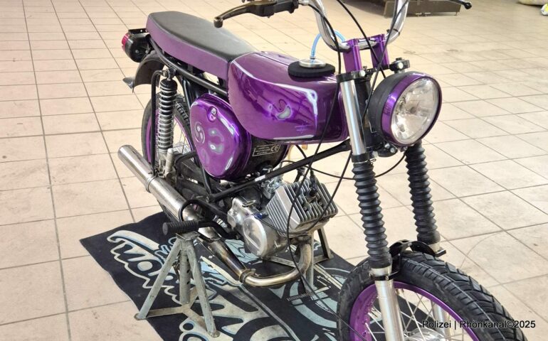 Das gestohlene Fahrzeug ist auffällig lila lackiert und dürfte daher im öffentlichen Raum schnell ins Auge fallen. Bislang liegen keine Hinweise auf den oder die Täter vor.
