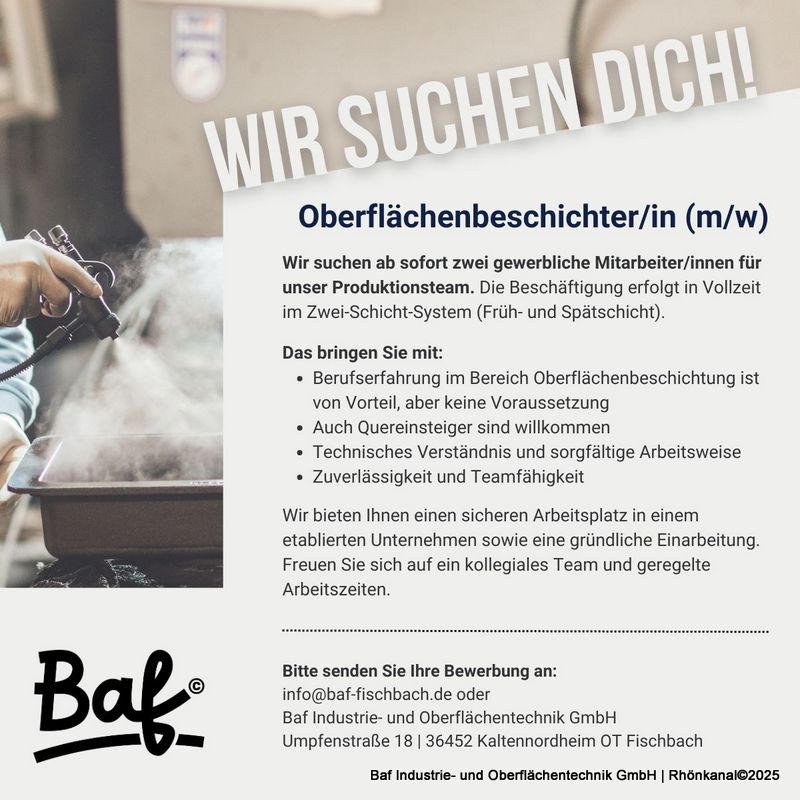 - Berufserfahrung im Bereich Oberflächenbeschichtung ist von Vorteil, aber keine Voraussetzung