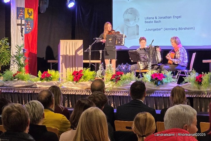 Zwischendurch begeisterten karnevalistische Tanzdarbietungen und musikalische Beiträge die Gäste. Den Abschluss gestaltete das Geschwisterpaar Liliana Engel (Violine) und Jonathan Engel (Akkordeon) mit dem Stück „Immer cool bleiben“ von Hans Günter Kölz sowie gemeinsam mit ihrer Lehrerin Beate Bach an der Gitarre mit „Loungebar“ von Annlang Börsheim.