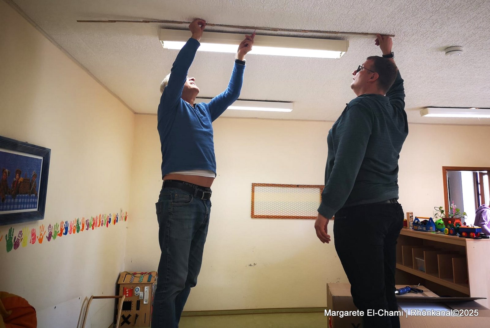 „Wir freuen uns sehr, dass wir durch solche Aktionen die wertvolle pädagogische Arbeit der Erzieherinnen im Kindergarten unterstützen können. Jetzt können die Kinder ihrer Kreativität bei Musik, Gesang und Theaterwerkstatt freien Lauf lassen“, stellt Ulrich Mang zufrieden fest, nachdem er die letzte Schallschutzplatte zusammen mit anderen Mitgliedern des Fördervereins und Elternbeirats installiert hat.