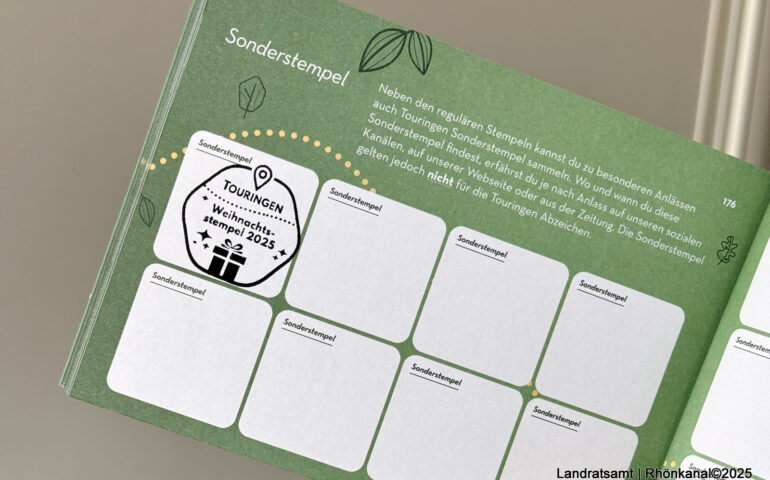 In diesem Jahr gibt es ein besonderes Weihnachts-Wanderspezial, und das findet auf der Creuzburg statt: Zusätzlich zum dortigen Touringen-Stempelkasten Nr. 29 hängt von Montag, 1. Dezember, bis Mittwoch, 31. Dezember 2025, ein weiterer Stempelkasten mit dem Touringen-Weihnachts-Sonderstempel, mit dem alle Touringen-Freunde ihr Stempelheft festlich schmücken können.