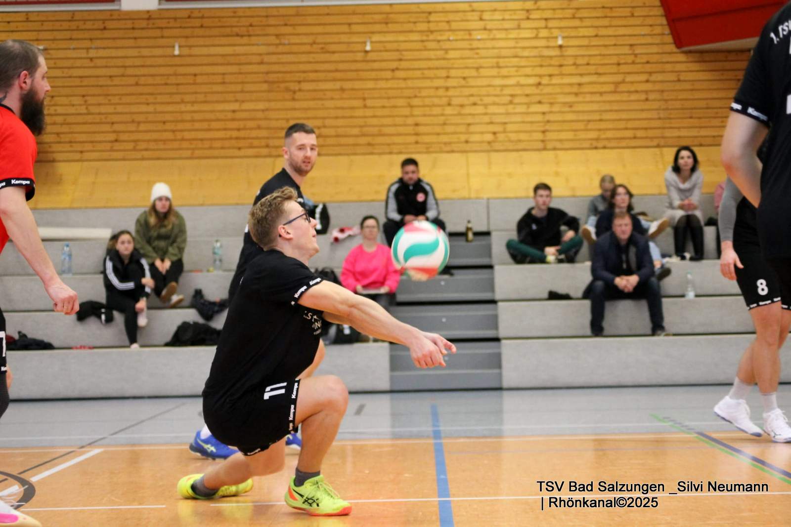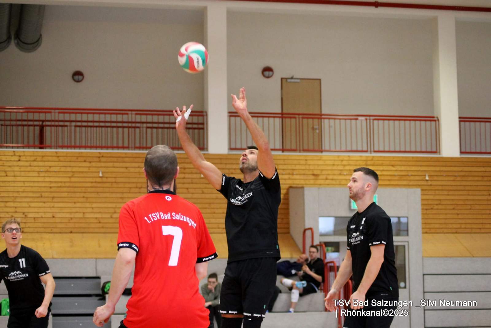 Die Jungs des TSV zeigten von Beginn an keine Unsicherheit und zogen im ersten Satz dank einer starken Aufschlagserie von Franz direkt mit 6:0 davon. Der Satz ging klar an Salzungen – 0:1 nach Sätzen.