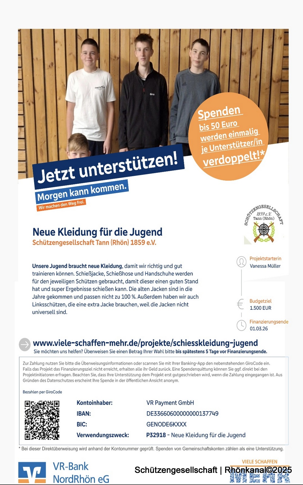 Viele schaffen mehr – Jetzt Jugendabteilung der Schützengesellschaft Tann unterstützen