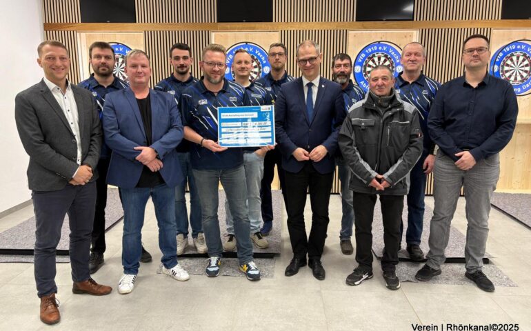 Vergangene Woche durfte sich der VfB Vacha 1919 e.V. über einen besonderen Moment freuen: Die offizielle Übergabe der Lottomittel durch die Thüringer Staatskanzlei für die neue Dartwand im Sportlerheim.