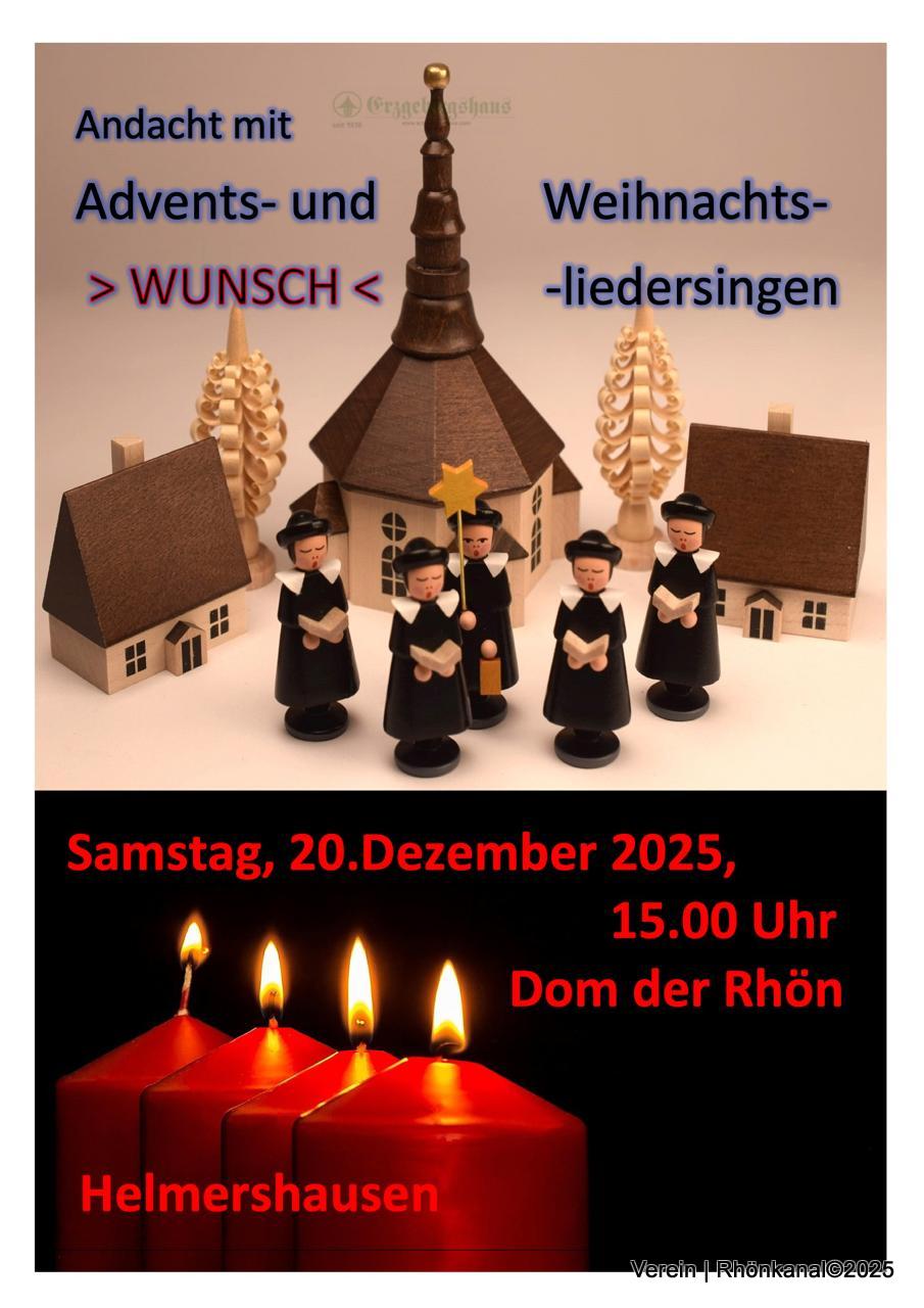 Am Samstag, den 20. Dezember 2025, wird herzlich zum Weihnachts-Wunschliedersingen in den Dom der Rhön eingeladen. Die Andacht mit anschließendem Mitsingnachmittag beginnt um 15 Uhr.