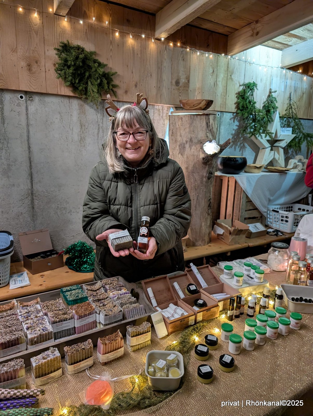 Großen Zuspruch erhielt auch Sabine Etzel, Kräuterspezialistin und Heimatkennerin. Mit Fachwissen und Leidenschaft bot sie selbst hergestellte Seifen, Salben und Badesalze an und nahm sich Zeit, ihr Wissen über Kräuter und ihre Wirkung weiterzugeben – ganz im Sinne überlieferter Weihnachtstraditionen.