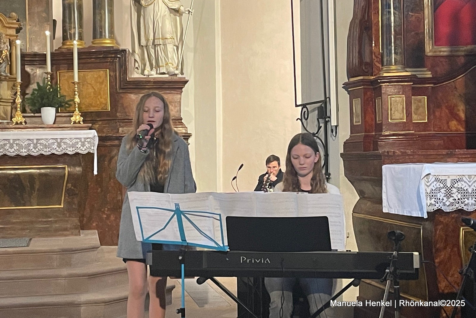Mit nachdenklichen Worten regte er dazu an, gerade in unruhigen Zeiten Blick und Herz für Mitmenschlichkeit zu öffnen. Eine gefühlvolle Interpretation von „Maria durch ein Dornwald ging“ gab es von Hermine Weider (Gesang) und Pauline Schuchert (Klavier).