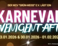 Der WCV „Grün-Weiss“ e.V. lädt am Freitag, den 23. Januar 2026, herzlich zur Prinzenkürung mit großem Kostümball ein.