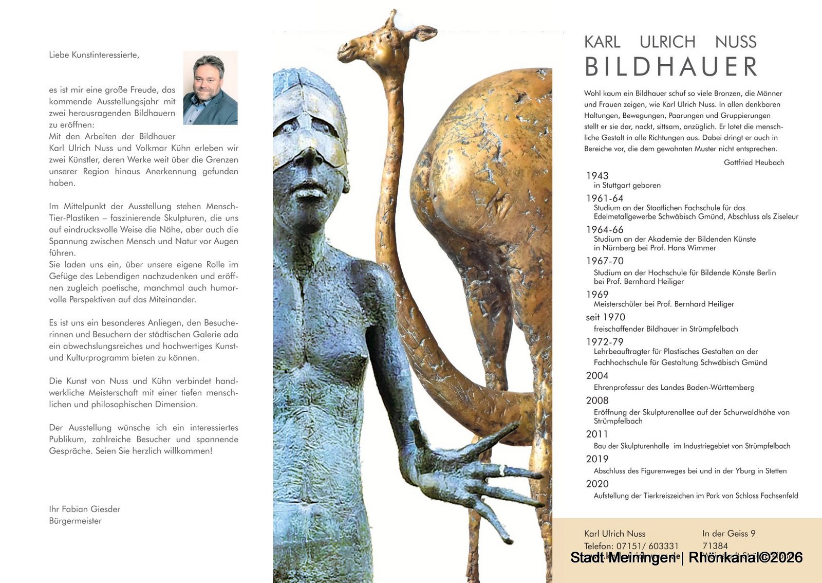 Unter dem Titel „that‘s my way“ präsentieren die beiden Bildhauer Karl Ulrich Nuss (Strümpfelbach-Weinstadt) und Volkmar Kühn (Gera) ihre Bronzearbeiten.