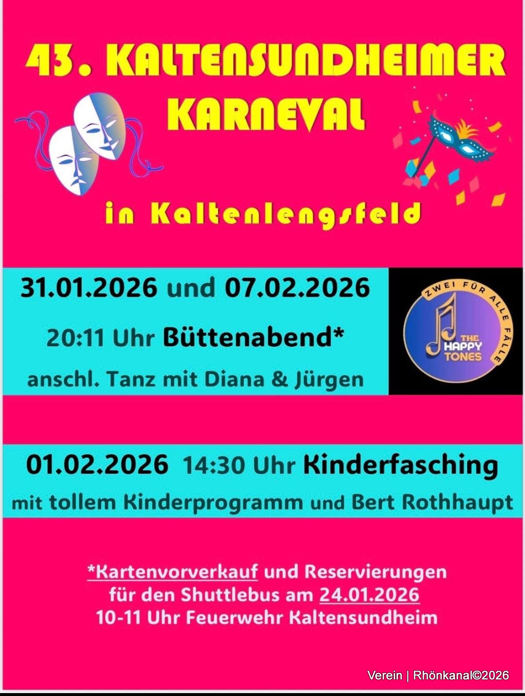 Der Kaltensundheimer Karnevalsverein lädt zur 43. Saison erneut ins Dorfgemeinschaftshaus nach Kaltenlengsfeld ein. An zwei Wochenenden wird den Gästen wieder ein buntes Programm geboten.