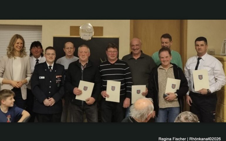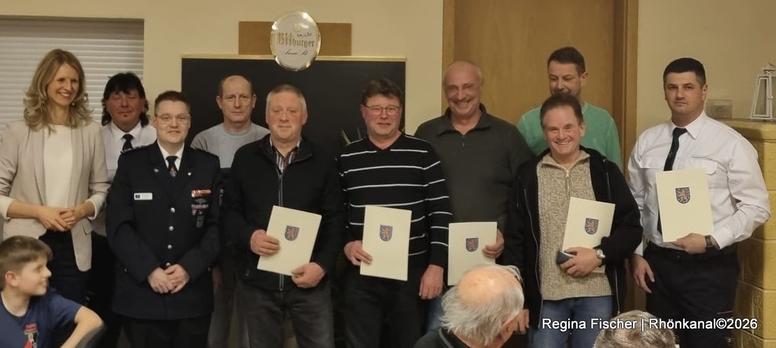 Mit dem goldenen Brandschutzehrenzeichen für 40 Jahre wurden Rudolf Hohmann, Lothar Grosch, Robert Hohmann, Werner Hohmann, Thomas Göb, Rudolf Gräf, Norbert Uth, Markus Kött, und Markus Jakob ausgezeichnet.