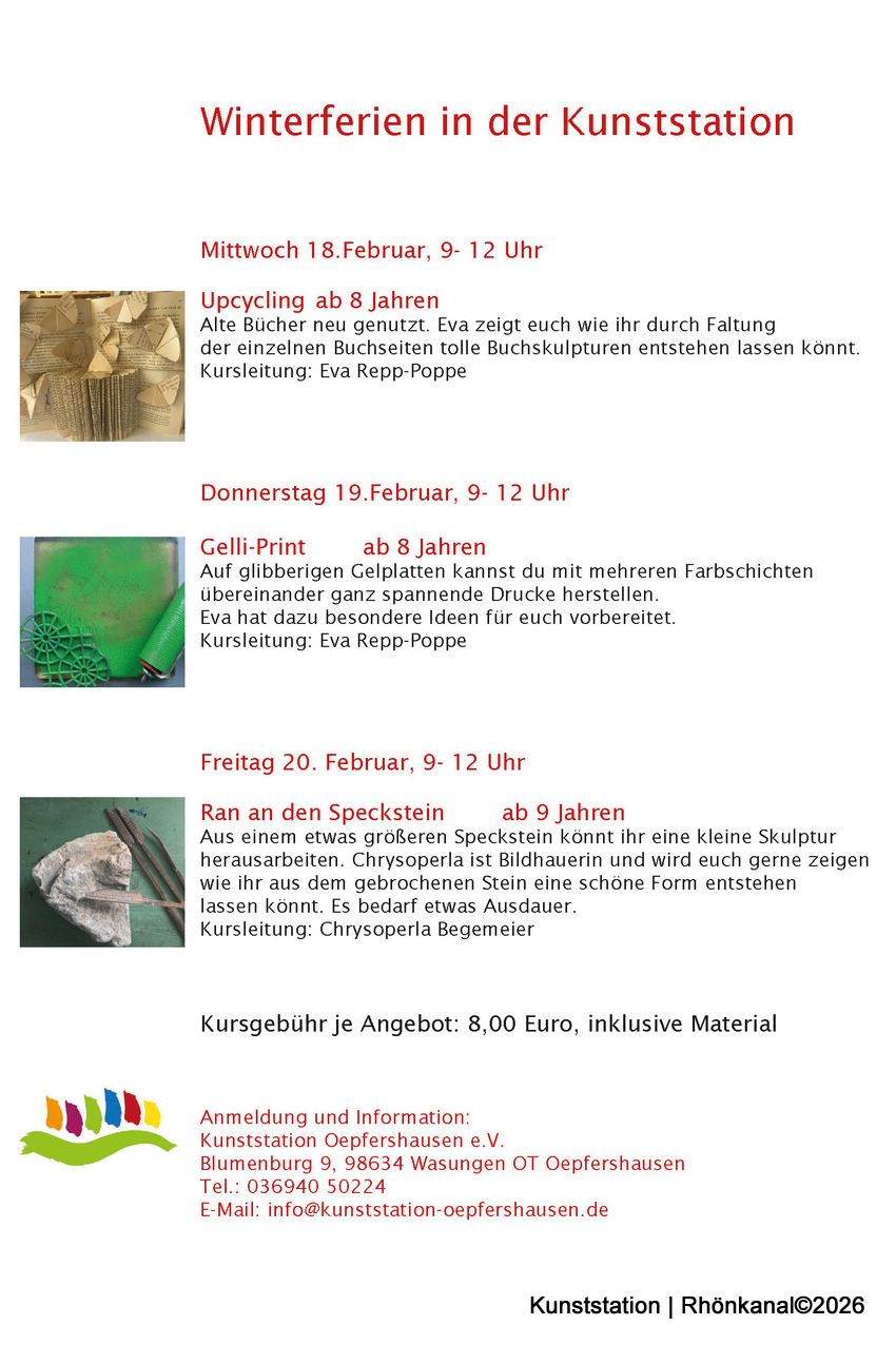 Das Team der Kunststation Oepfershausen hat für die Winterferien ein umfangreiches Ferienangebot vorbereitet.