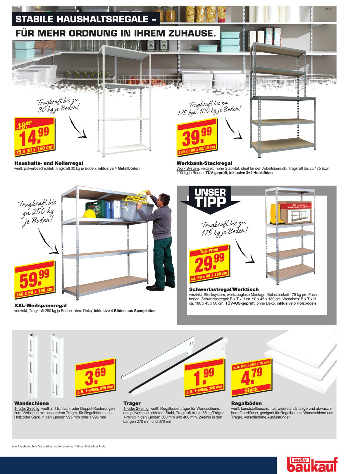 Außenanlagen, Bauelemente, Baustoffe, Eisenwaren, Elektroartikel, Farben, Fliesen, Gartensortimente, Haushaltwaren, Heizungen, Holz, Holzwerkstoffe, Lampen und Leuchtmittel, Sanitär-bedarf, Tapeten, Werkzeuge, Pflanzen und Schnittblumen, Autozubehör und vielen mehr...