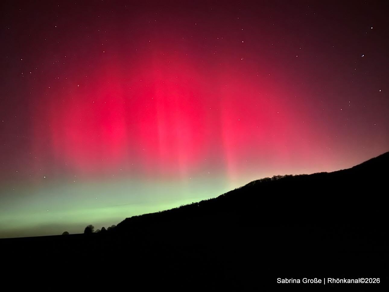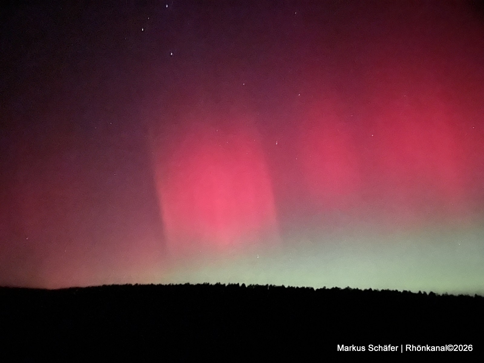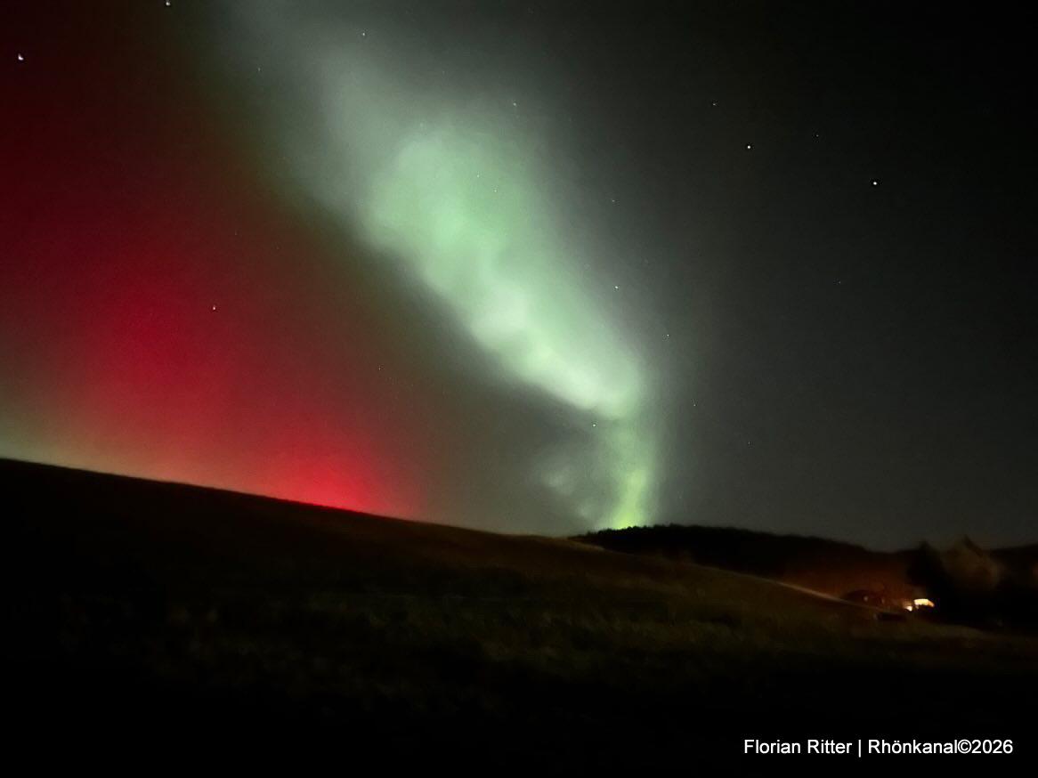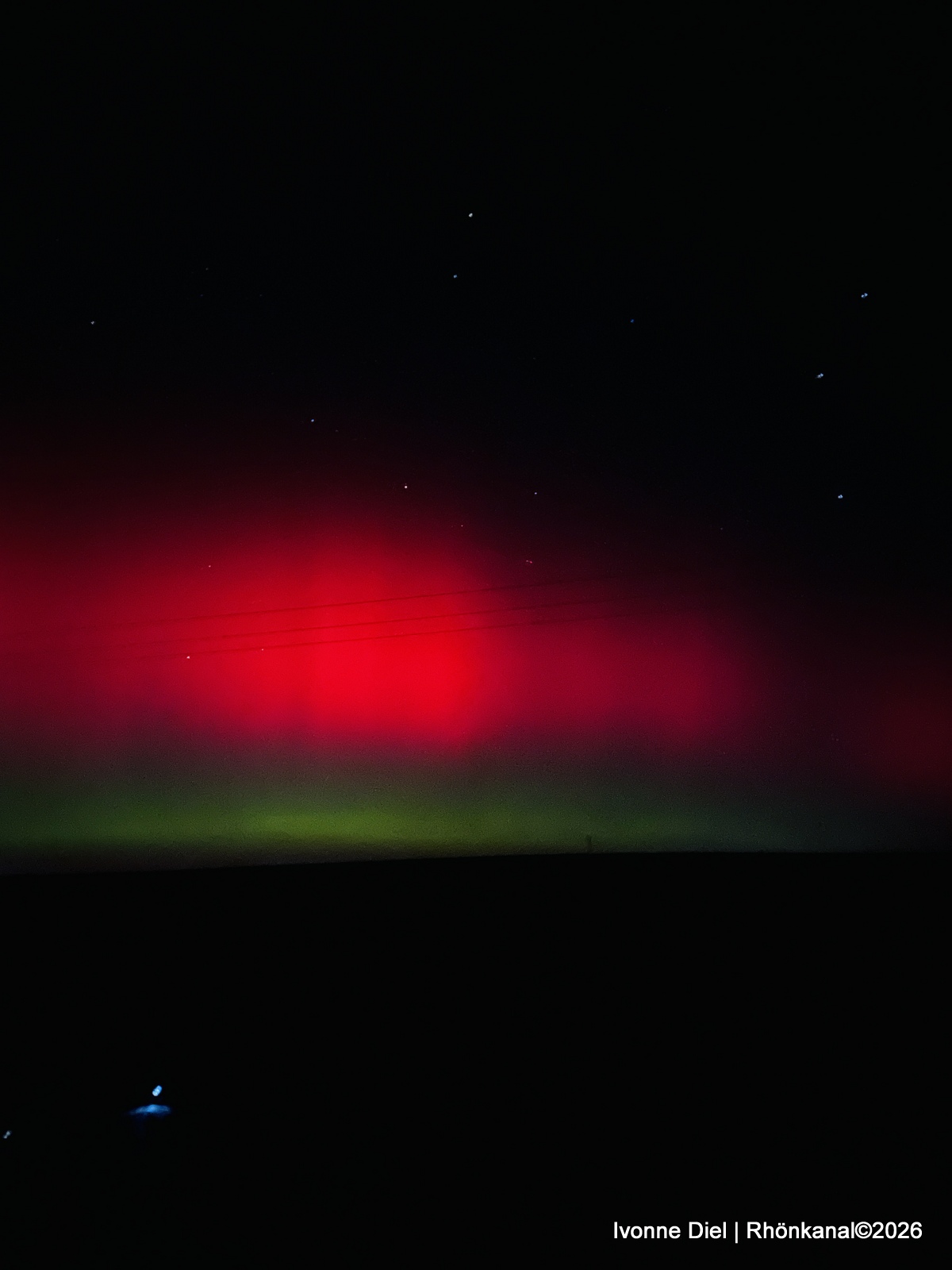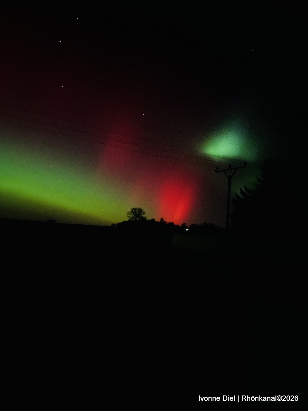 Ein seltenes Naturspektakel war am Montagabend am Himmel über der Rhön zu sehen: Leuchtende Polarlichter, die unsere Region in ein intensives Rot und Grün tauchten.