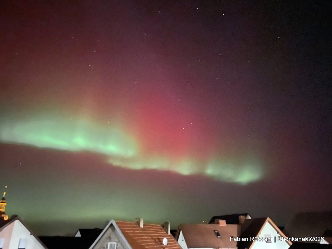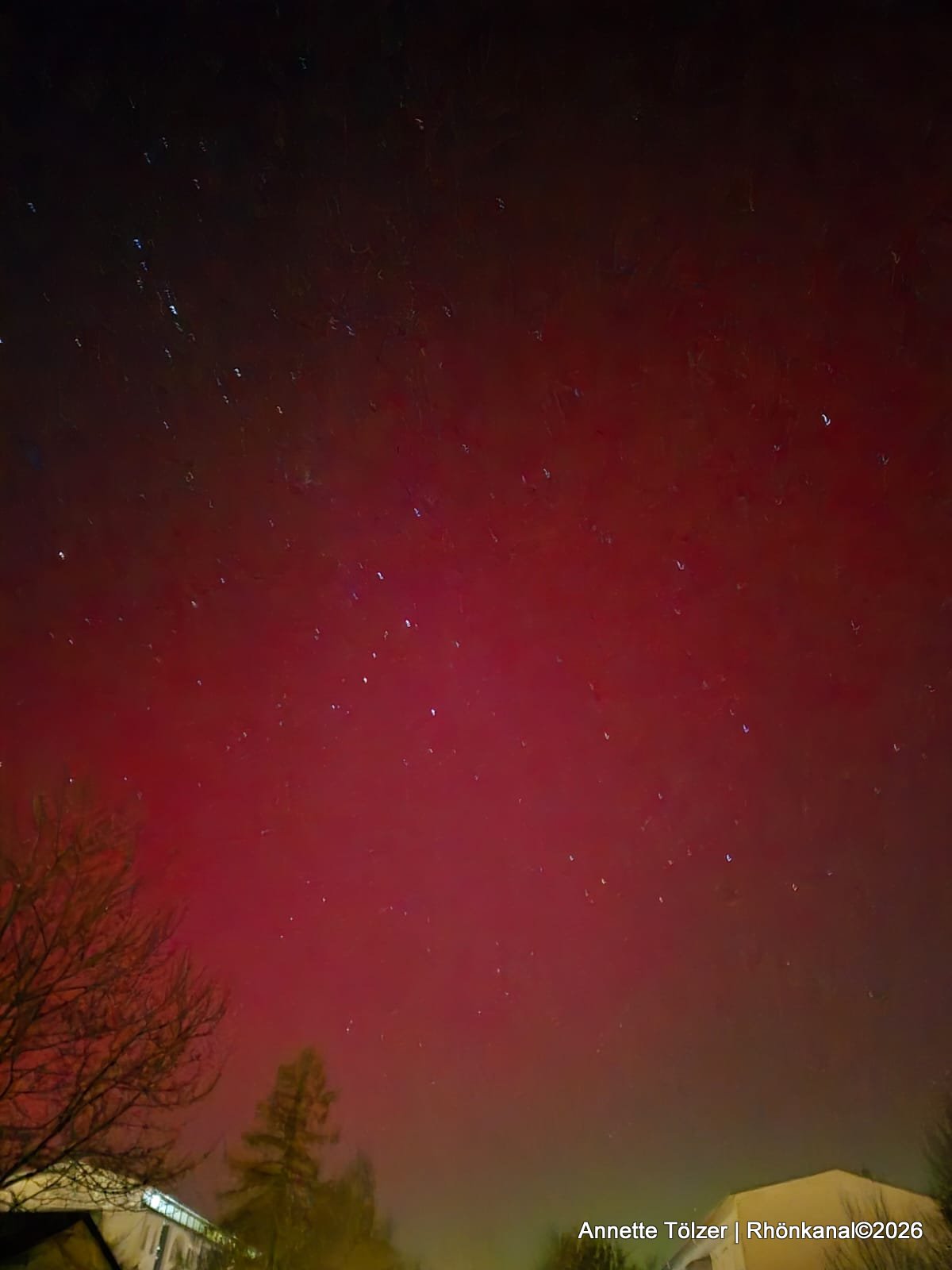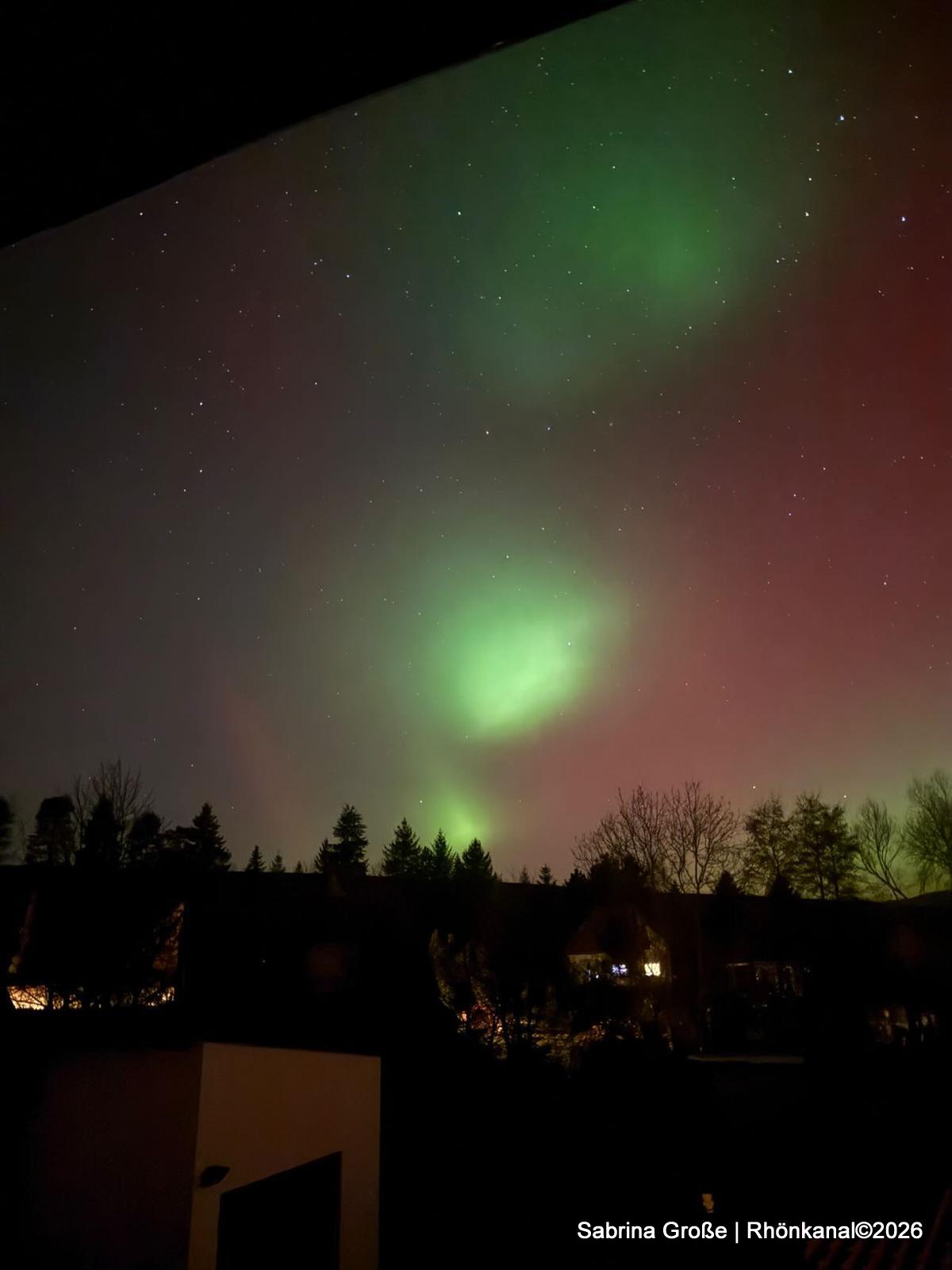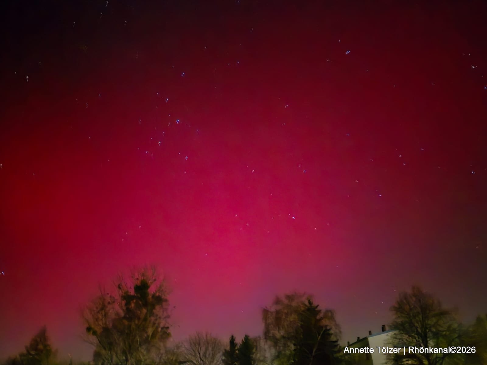 Ein seltenes Naturspektakel war am Montagabend am Himmel über der Rhön zu sehen: Leuchtende Polarlichter, die unsere Region in ein intensives Rot und Grün tauchten.
