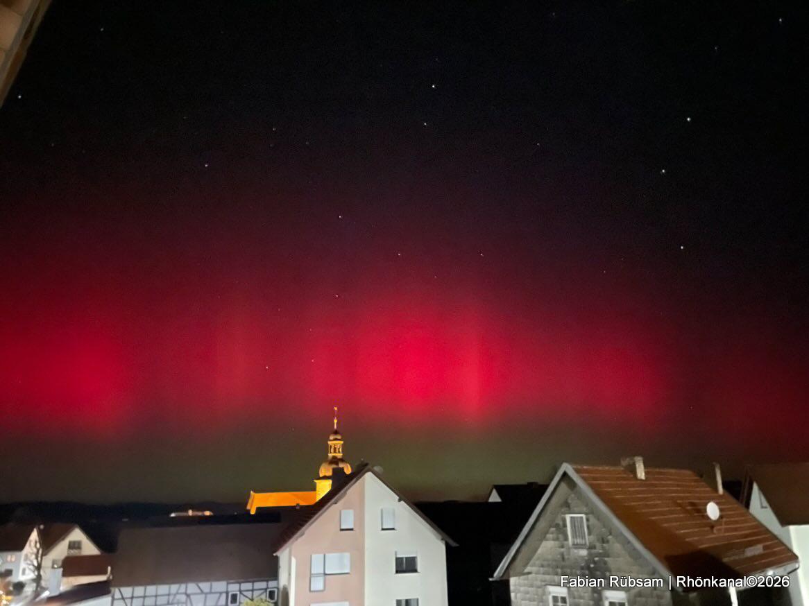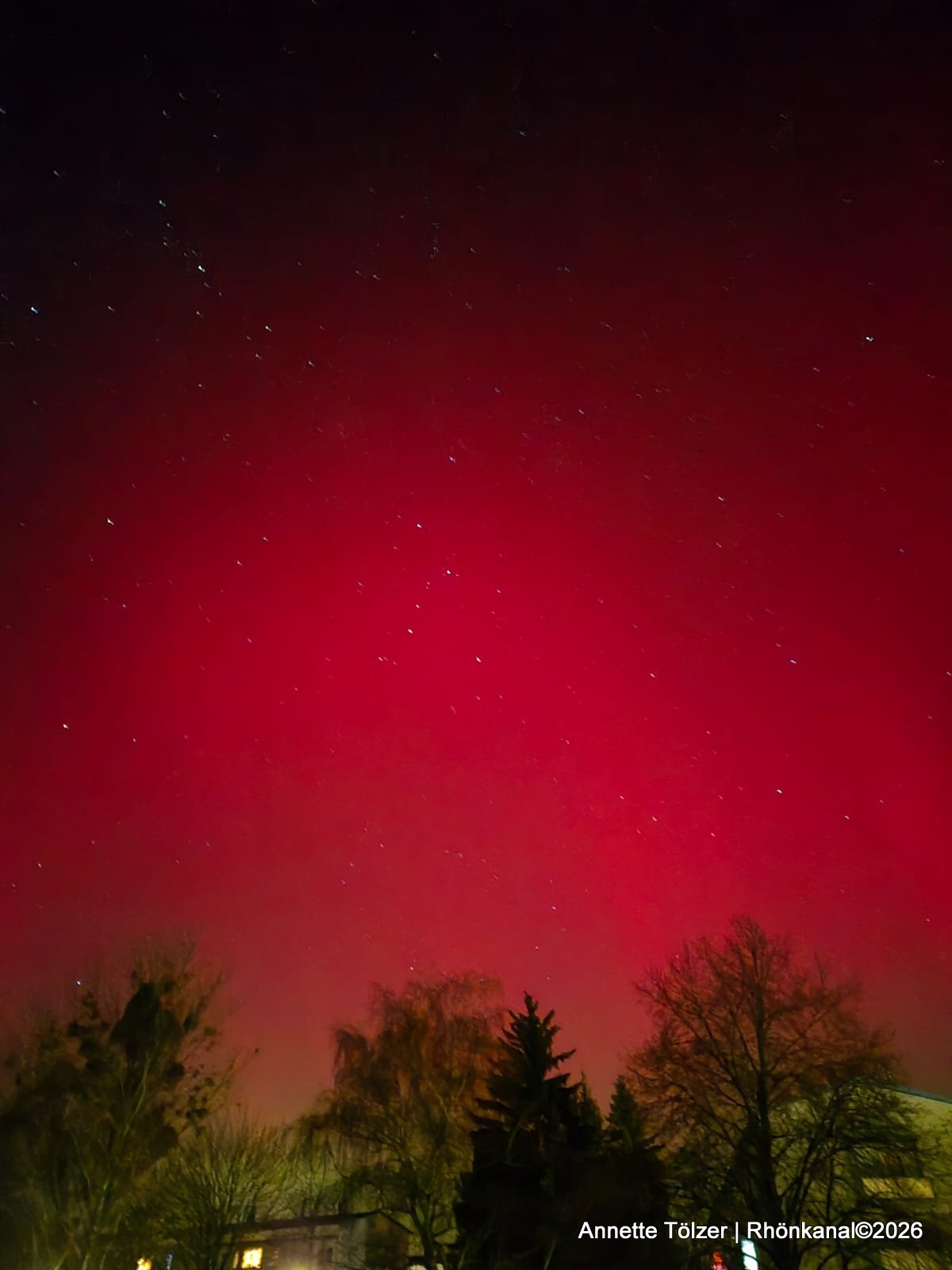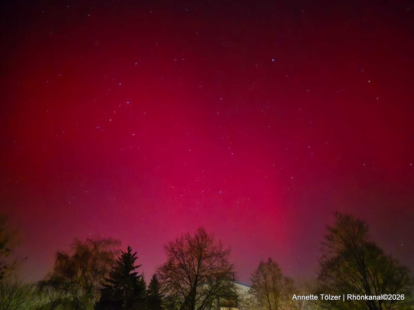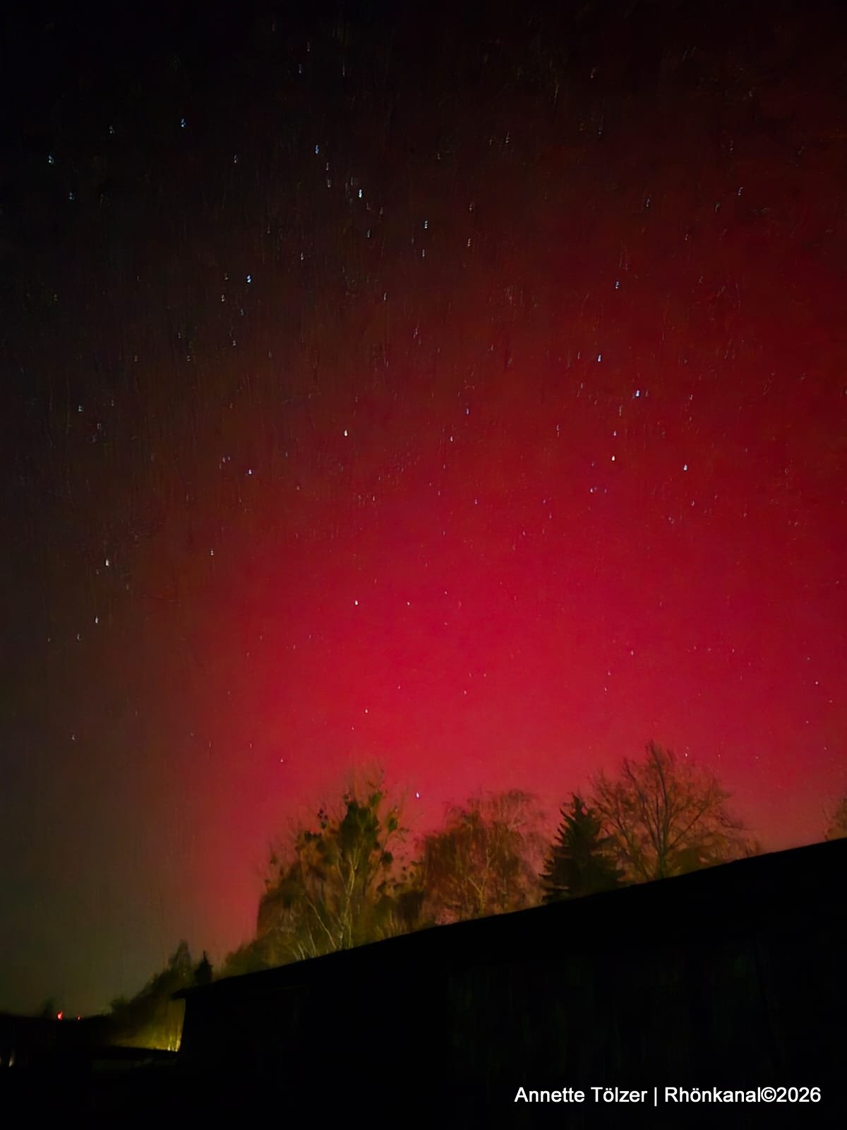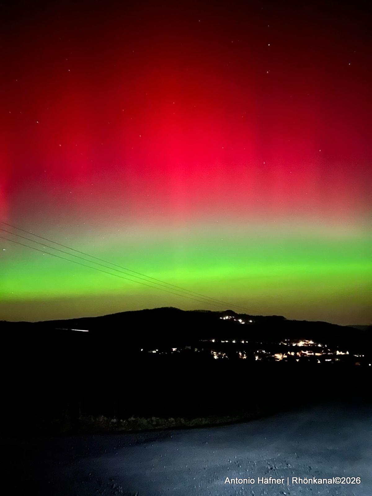 Ein seltenes Naturspektakel war am Montagabend am Himmel über der Rhön zu sehen: Leuchtende Polarlichter, die unsere Region in ein intensives Rot und Grün tauchten.