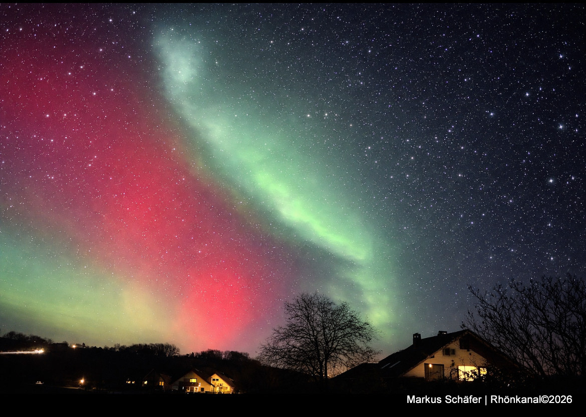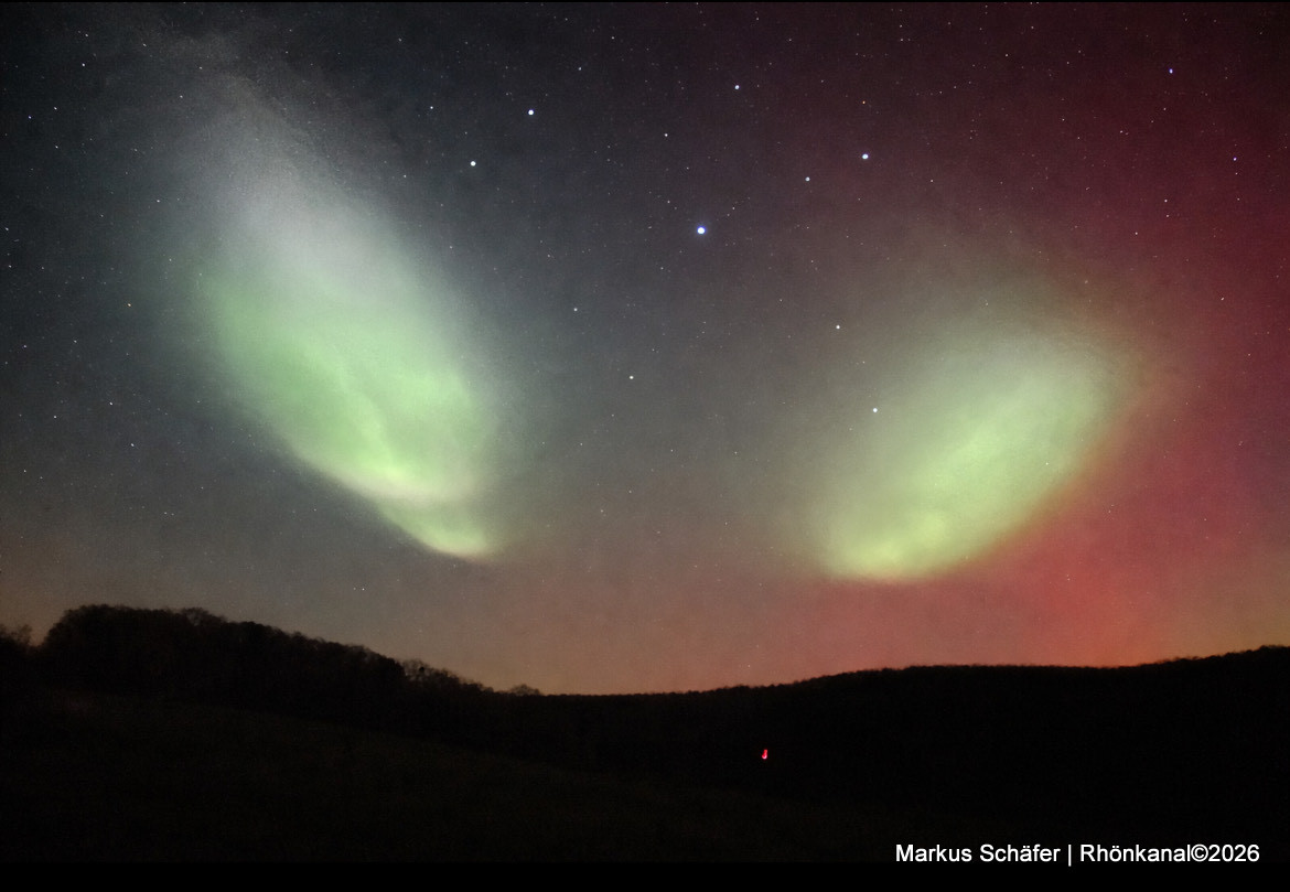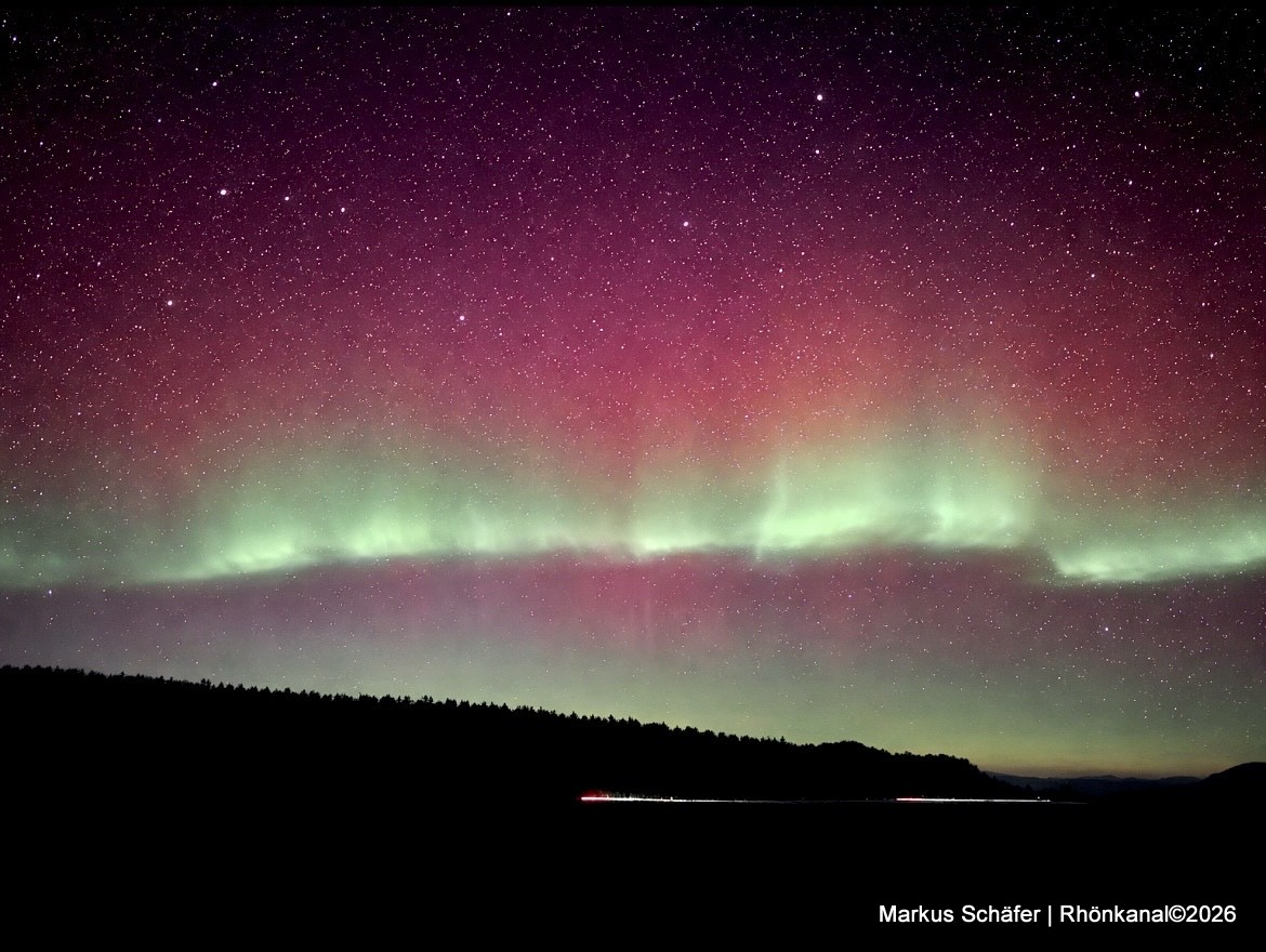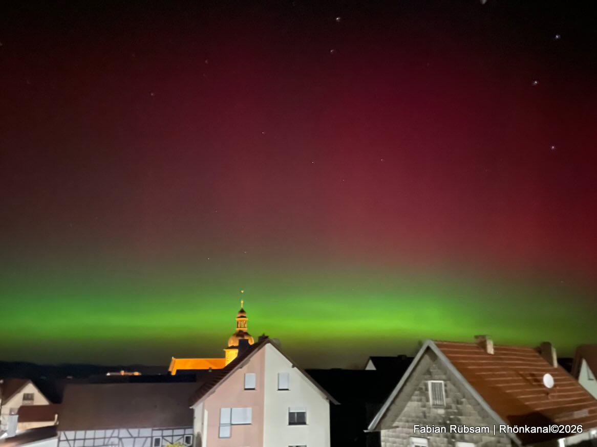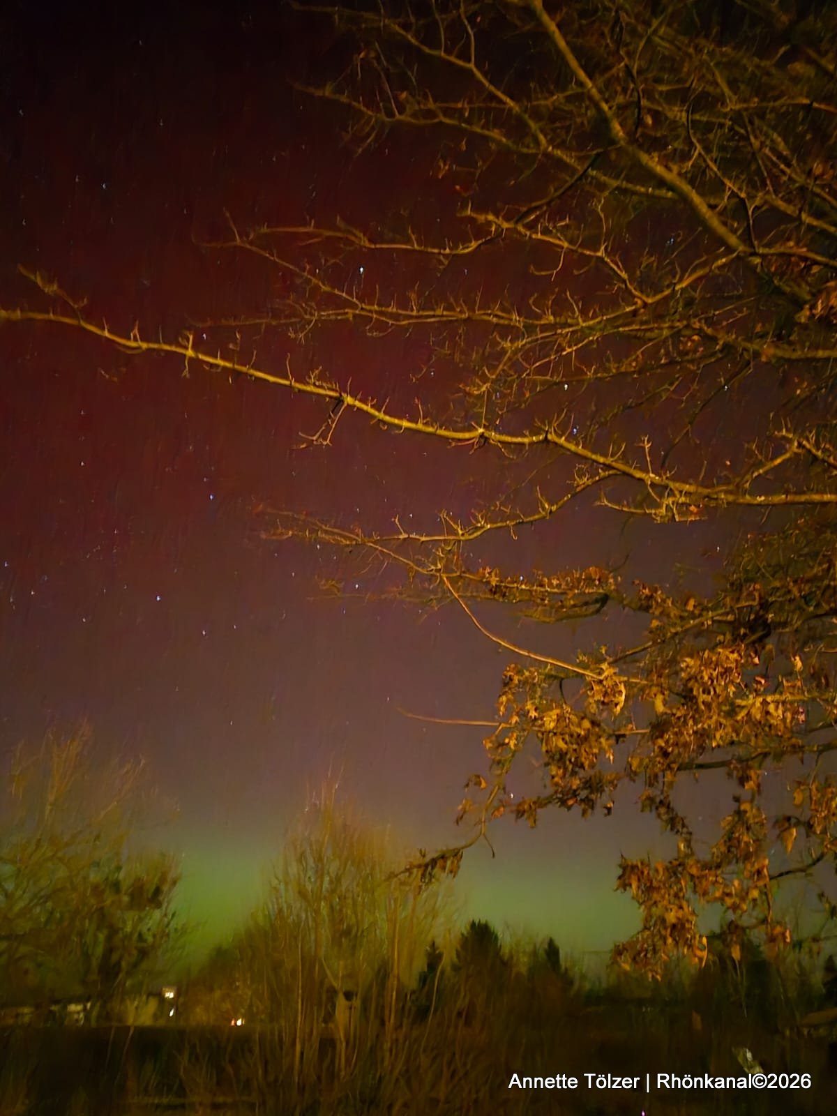 Ein seltenes Naturspektakel war am Montagabend am Himmel über der Rhön zu sehen: Leuchtende Polarlichter, die unsere Region in ein intensives Rot und Grün tauchten.