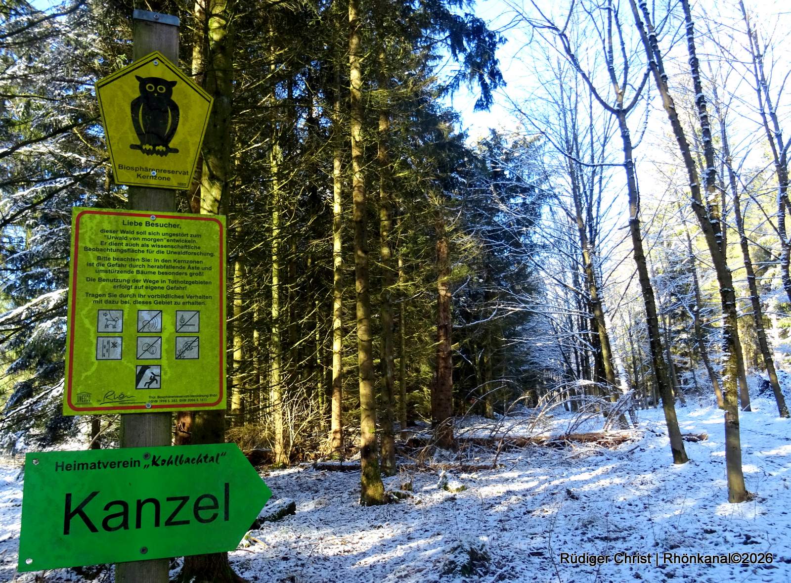 Ein besonderes Wintererlebnis bietet die Roßberg-Kanzel oberhalb von Kranlucken und Zitters. Eingebettet in ein ausgedehntes Waldgebiet, das zur Kernzone des UNESCO-Biosphärenreservats Rhön gehört, liegt dieser Aussichtspunkt direkt an der hessisch-thüringischen Landesgrenze.