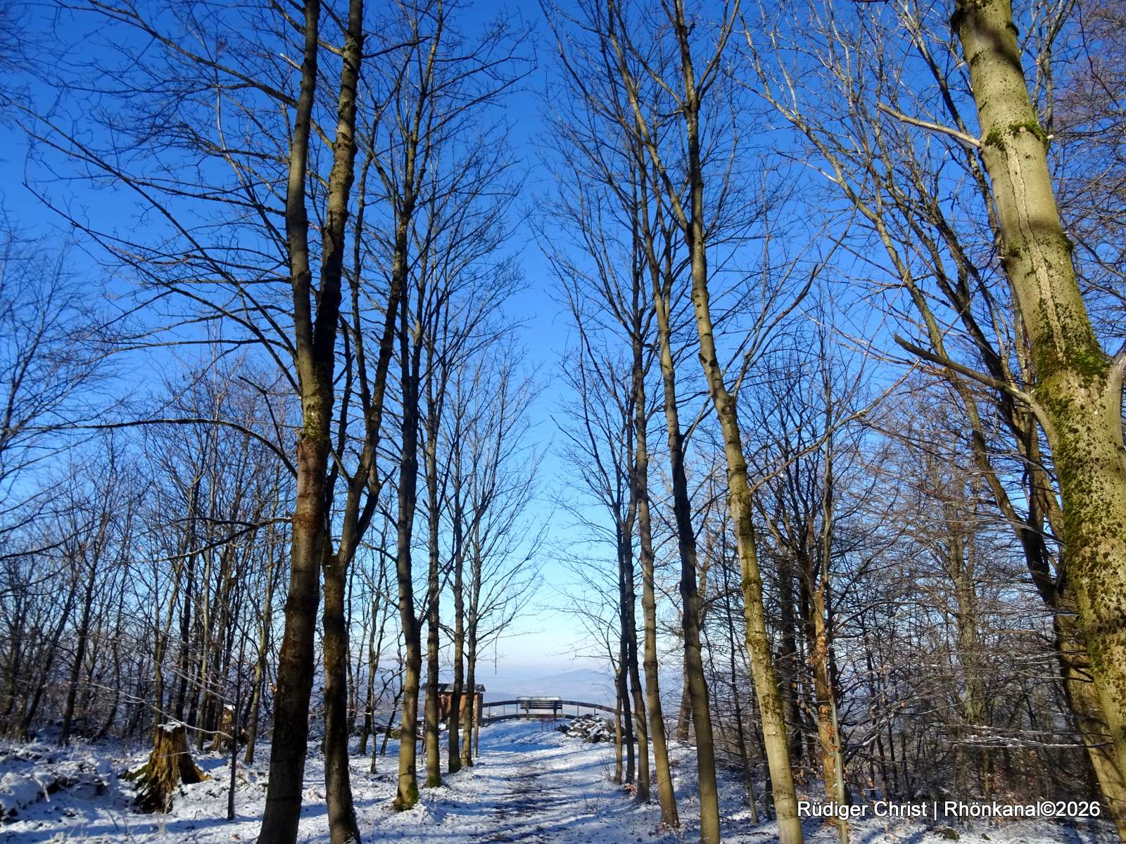 Gerade im Winter, wenn Raureif die Bäume schmückt und klare Luft die Sicht schärft, eröffnet sich hier ein überraschend phantastischer Blick ins Ulstertal sowie auf das Hessische Kegelspiel.