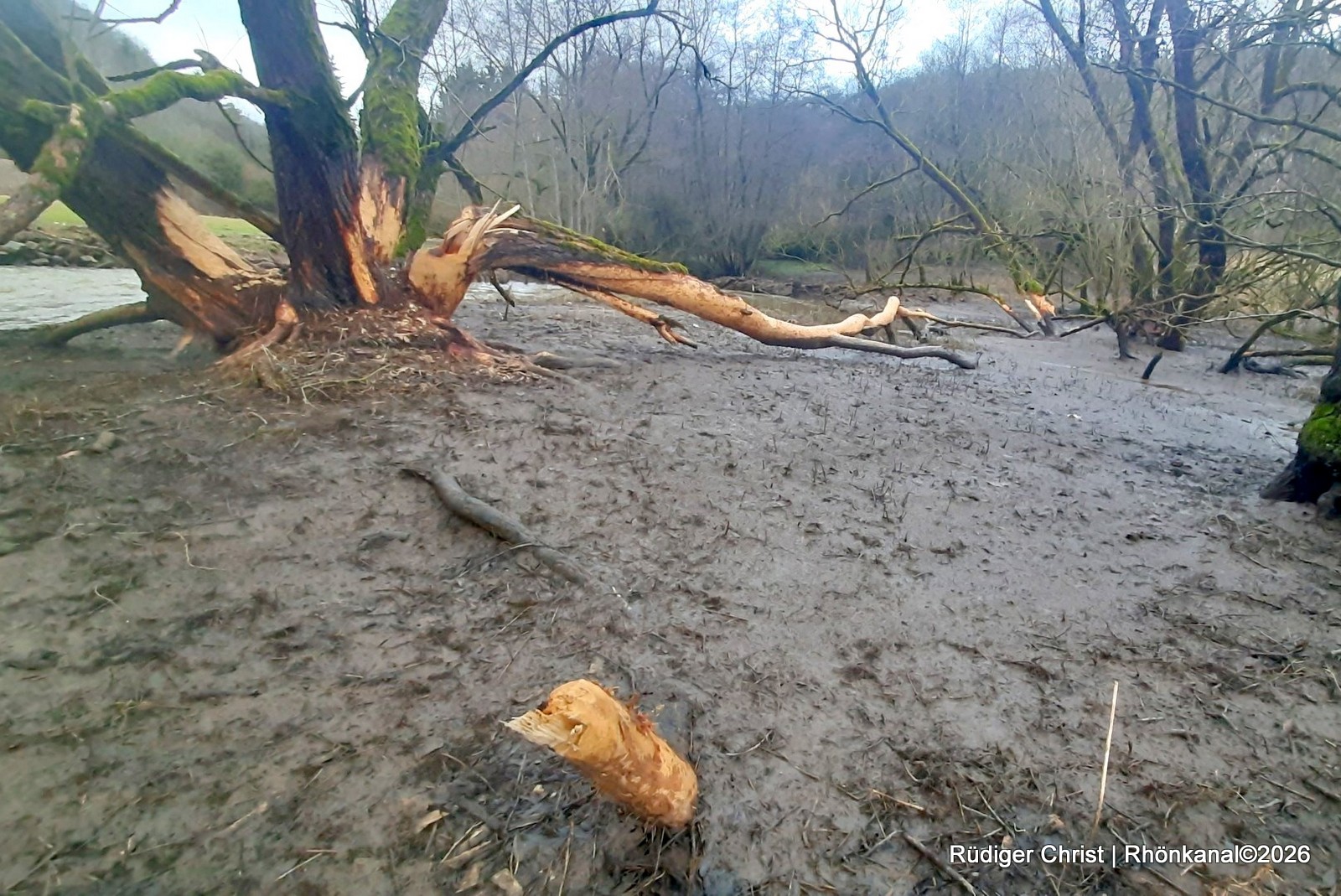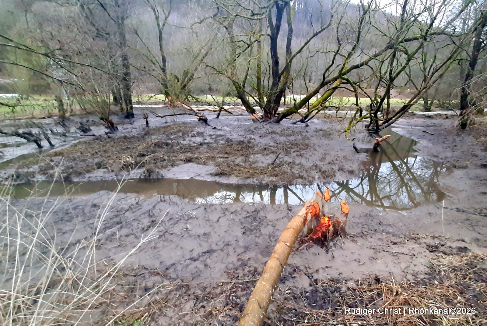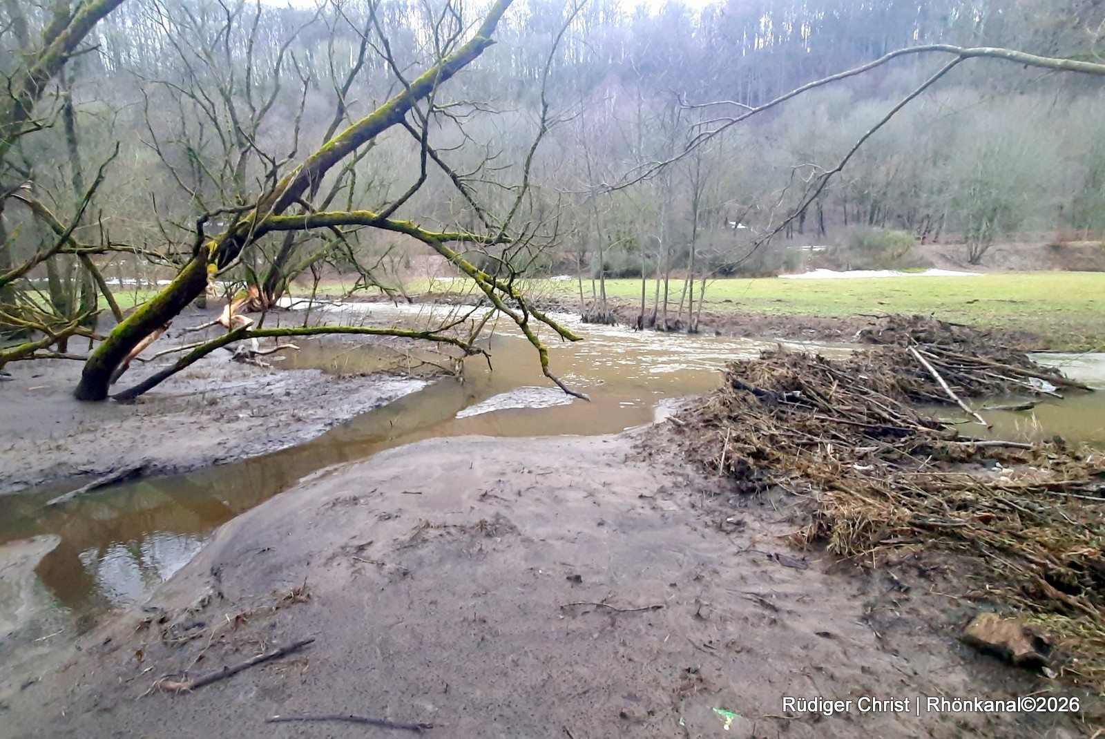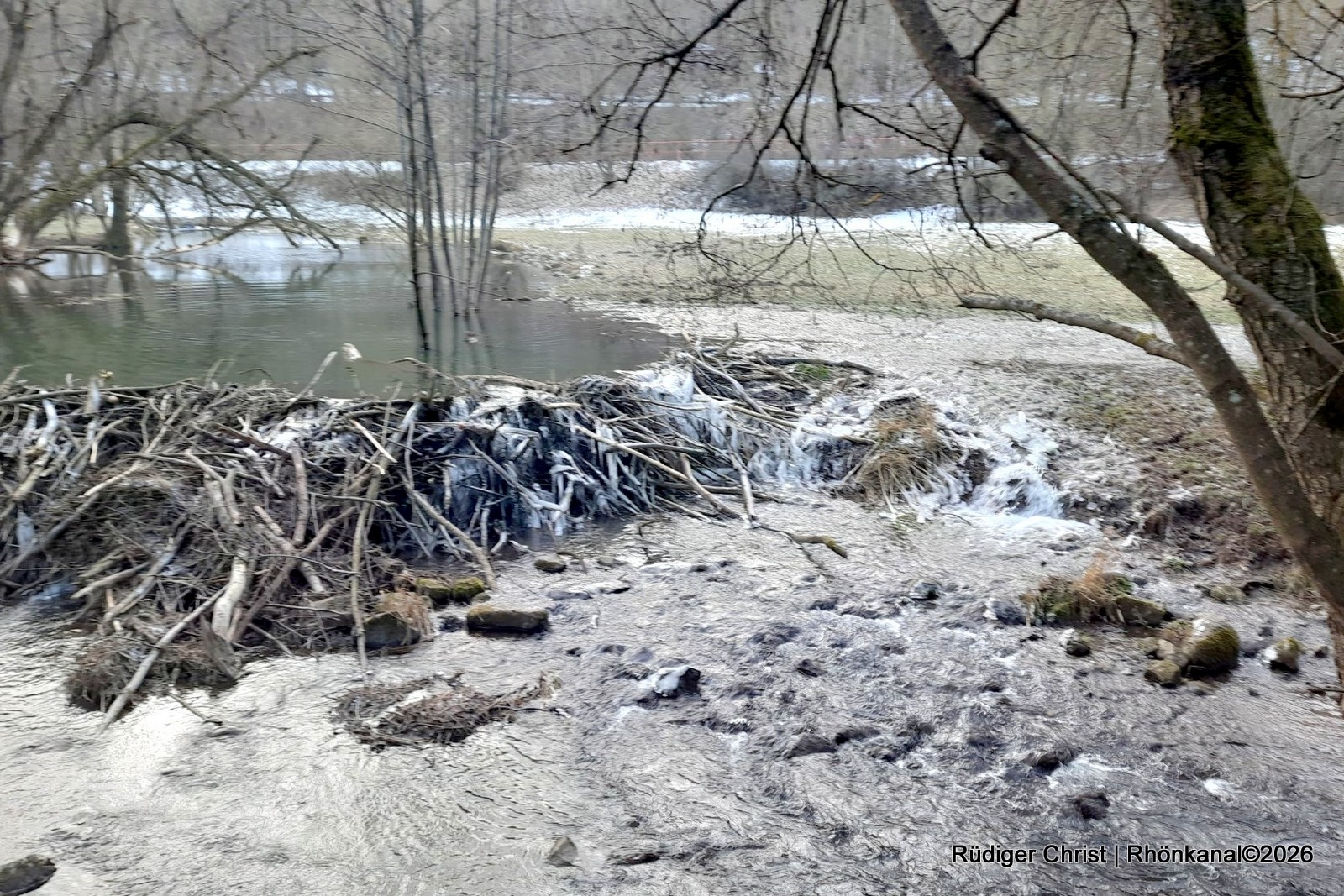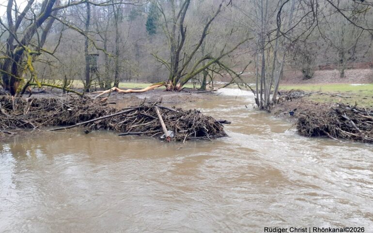 Das starke Tauwetter der vergangenen Tage hat entlang der Felda zu deutlich erhöhten Wasserständen geführt und einen Biberdamm zwischen Kaltennordheim und Fischbach zerstört.
