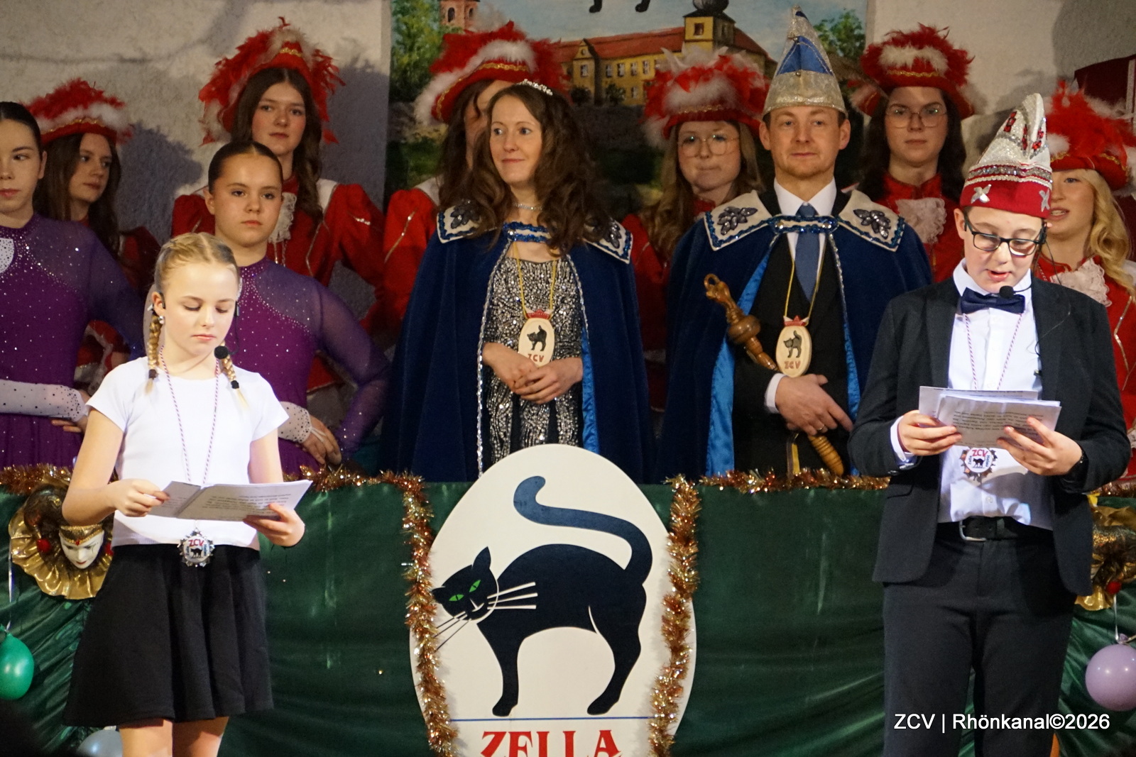 Kinderprinzessin Dorothee I. lud alle kleinen und großen Narren herzlich ein, gemeinsam fröhlich zu feiern – mit einem Augenzwinkern und viel Humor. Gemeinsam versprachen sie eine fröhliche, bunte und erlebnisreiche Kampagne und begrüßten das Publikum mit einem kräftigen dreifachen „Zella – Helau“.