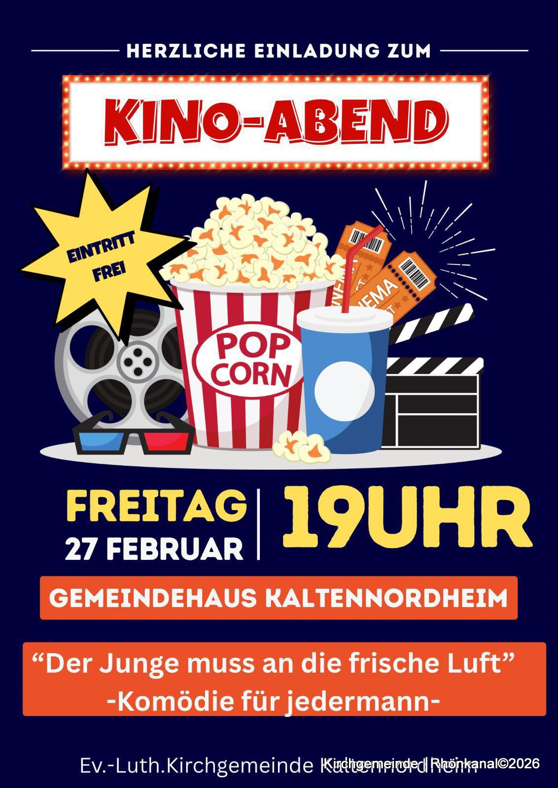Die Ev.-Luth. Kirchgemeinde Kaltennordheim lädt am Freitag, den 27. Februar 2026, herzlich zum Kino-Abend ein. Der Film beginnt um 19 Uhr im Gemeindehaus.