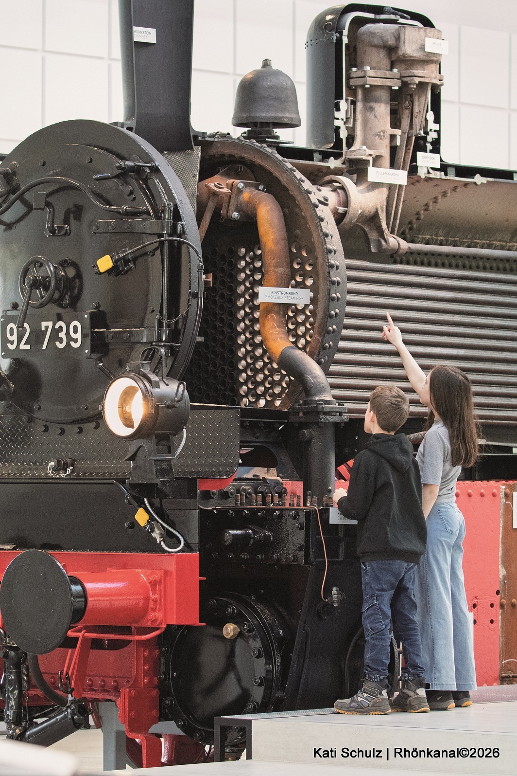Wie fährt eine Dampflok? Warum zischt und rauscht sie? Und was passiert eigentlich im Führerstand? Mit Schaffnermütze und Signalkelle ausgestattet gehen die Kinder gemeinsam mit einem Guide auf eine spannende Entdeckungstour durch die Ausstellung.