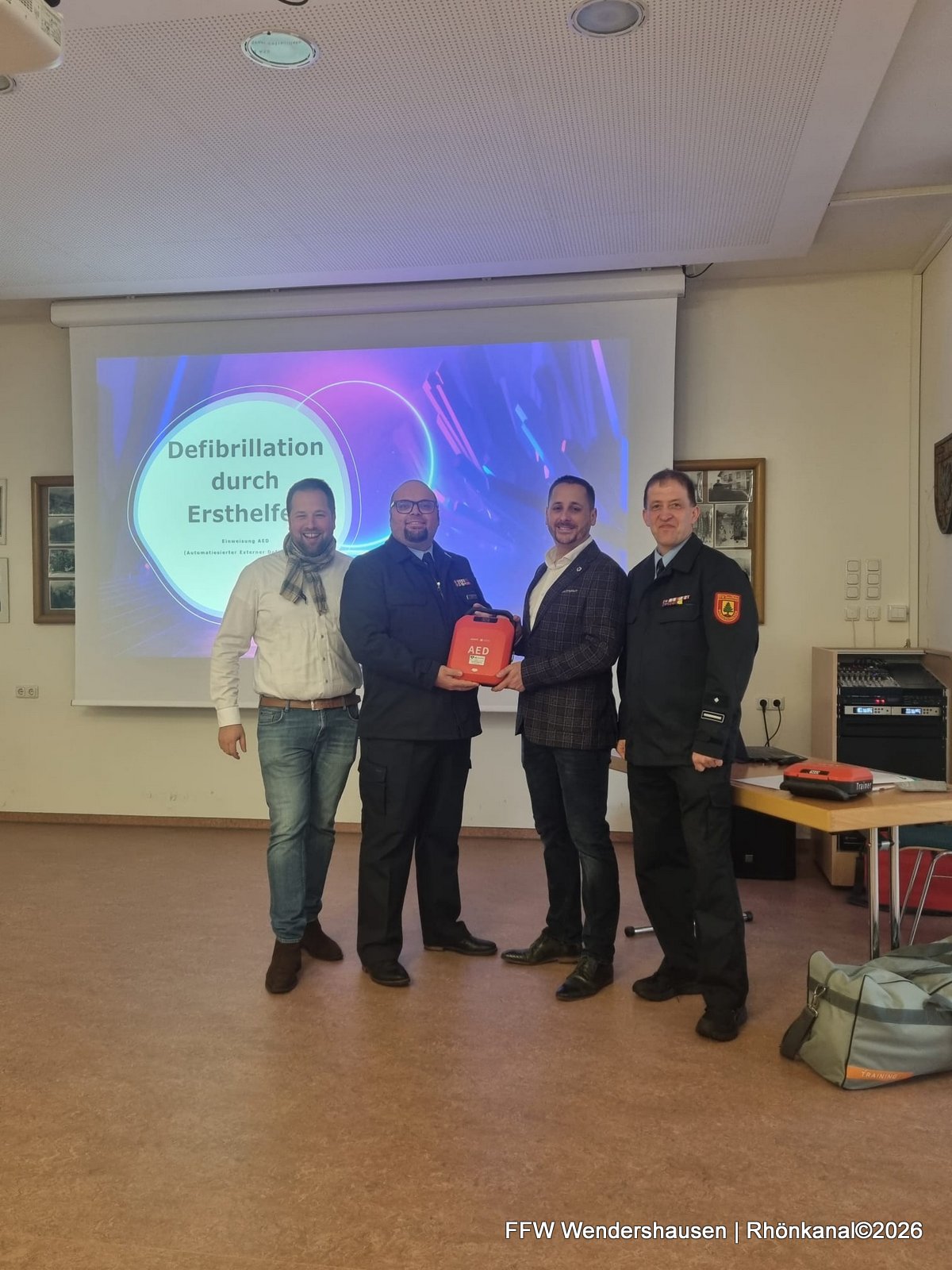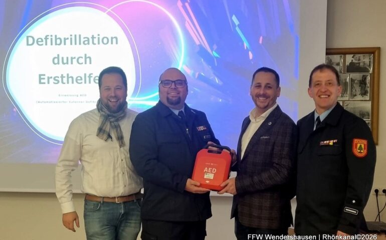 Die Freiwillige Feuerwehr Wendershausen e.V. hat am Sonntag offiziell ein Automatisiertes Externes Defibrillationsgerät (AED) an die Einwohnerinnen und Einwohner des Ortsteils Wendershausen übergeben.