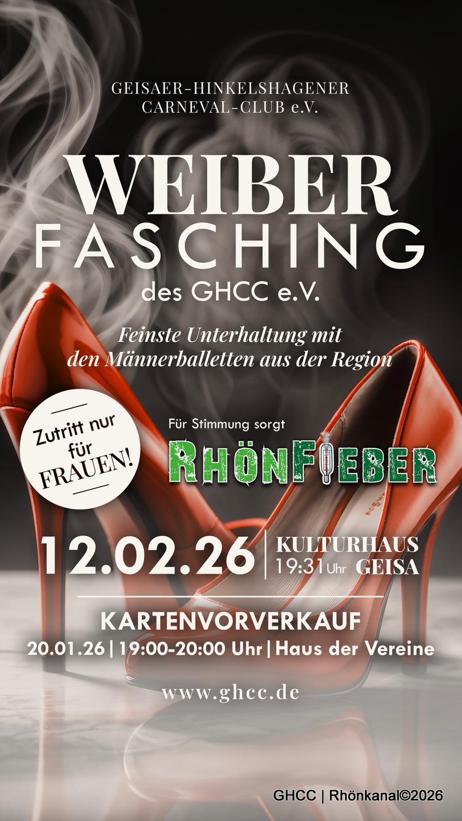 Der Weiberfasching beginnt um 19.31 Uhr - Zutritt nur für Frauen! Für Stimmung sorgen nicht nur die Männer auf der Bühne, sondern auch die Partyband „Rhhönfieber“.