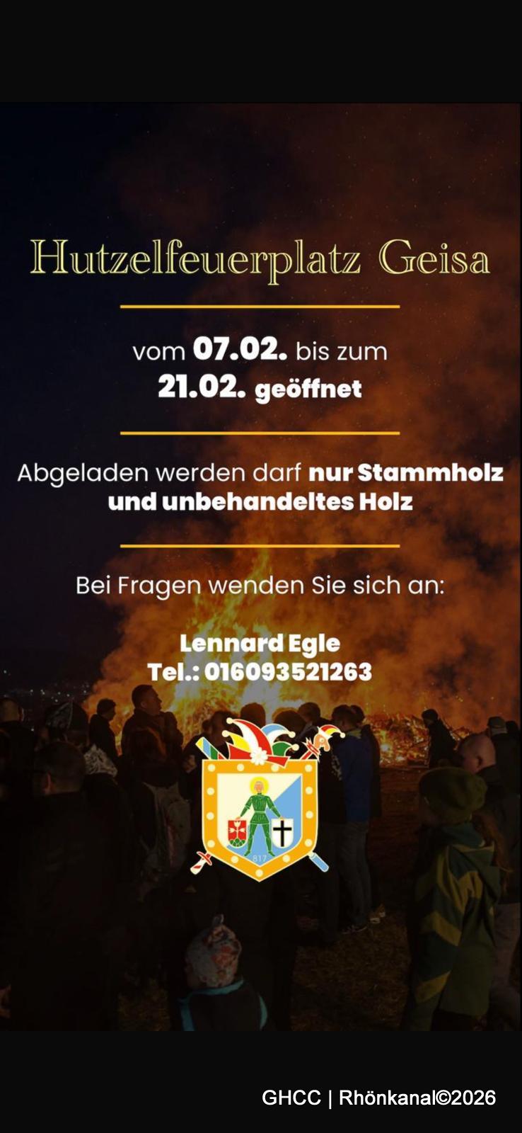 Das große Hutzelfeuer am Rasdorfer Berg findet dann am Samstag, den 22. Februar 2026, statt. Beginn ist um 18 Uhr. Der Platz ist bis zum 21. Februar geöffnet.