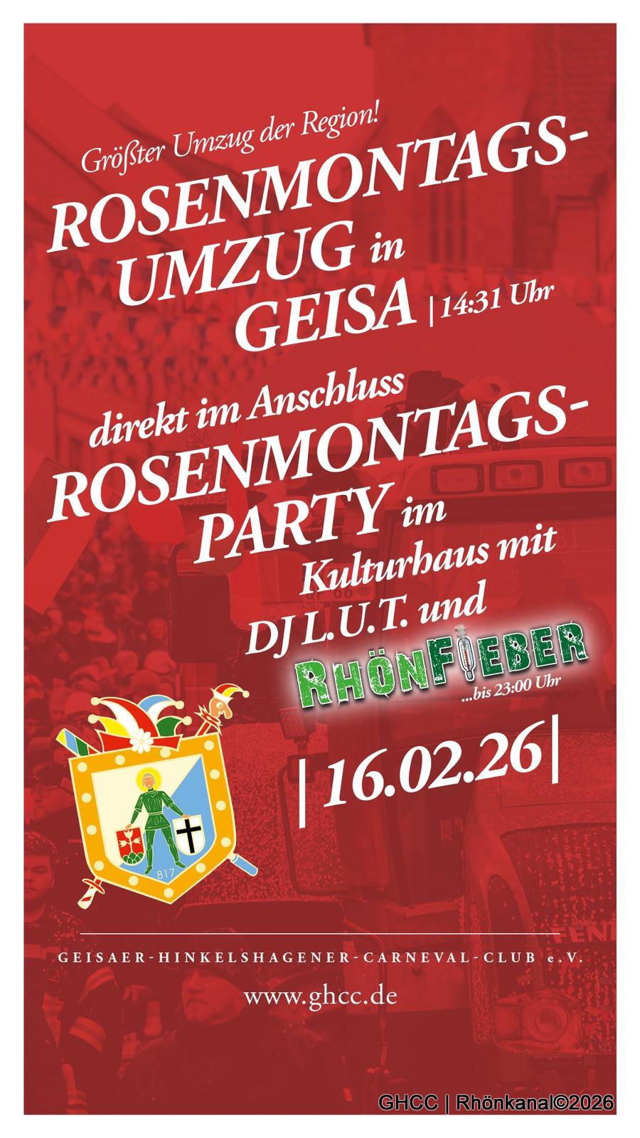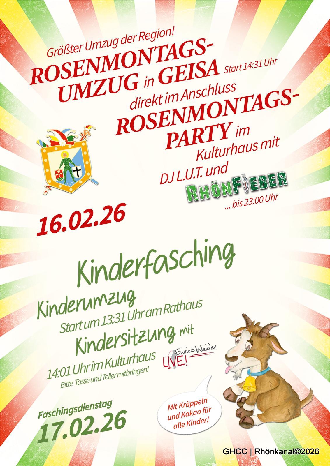 Die große Party folgt schließlich am Rosenmontag: Der Rosenmontags-Umzug zieht jährlich zahlreiche Besucher in die Rhönstadt. Beginn ist um 14.31 Uhr.