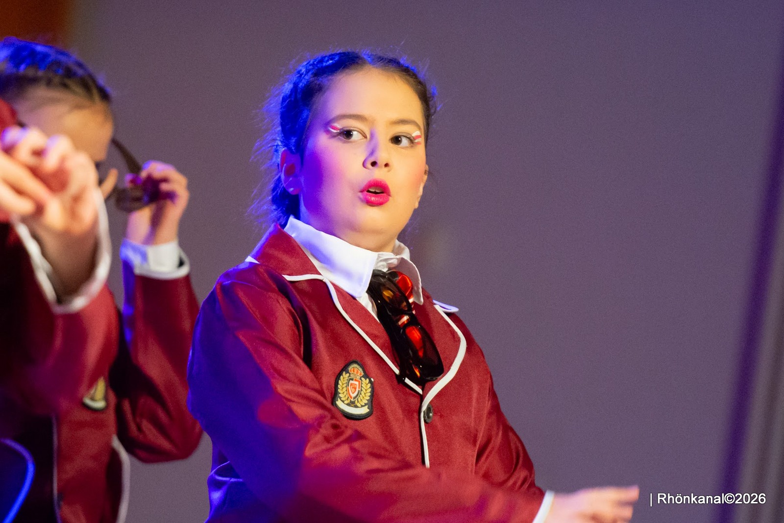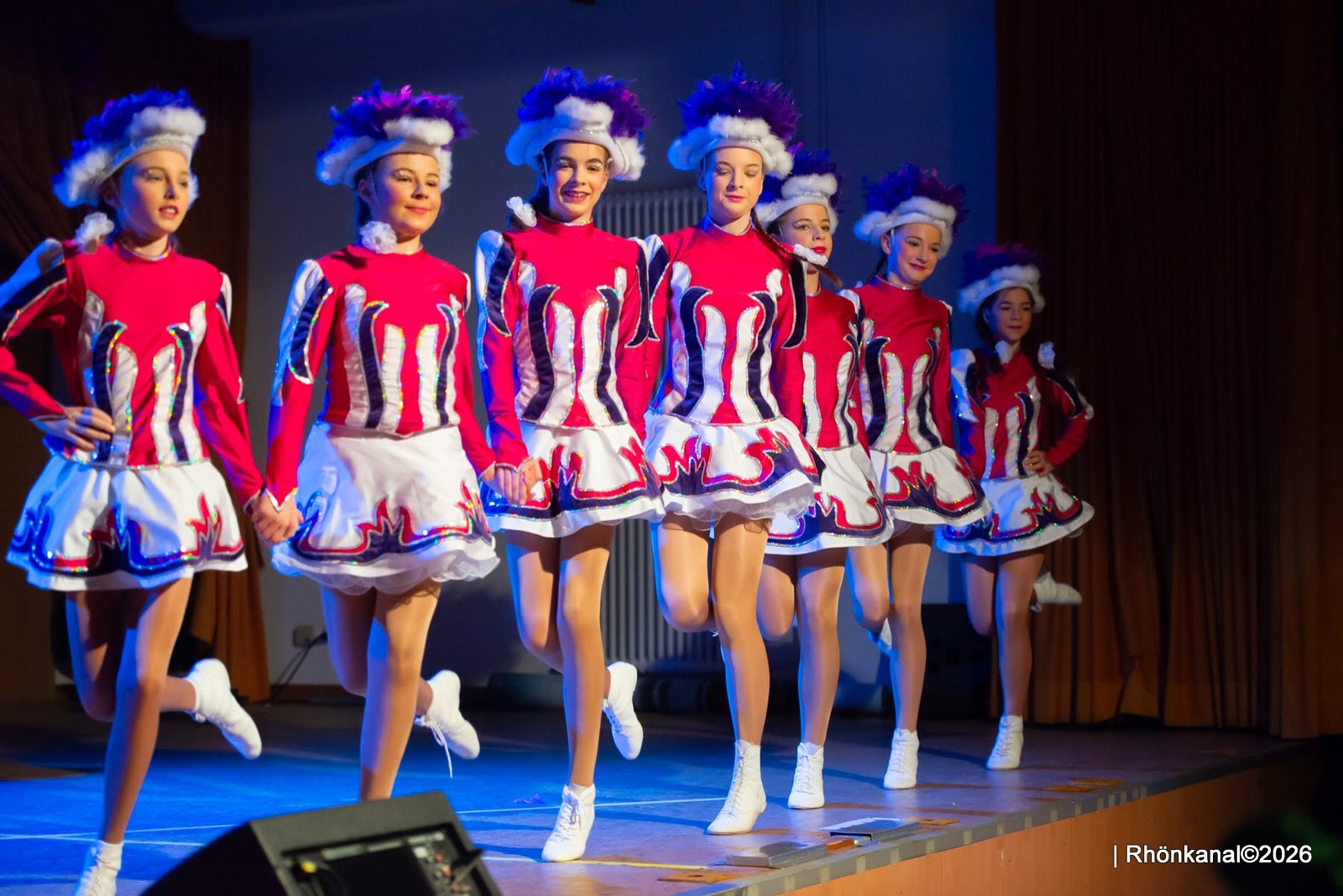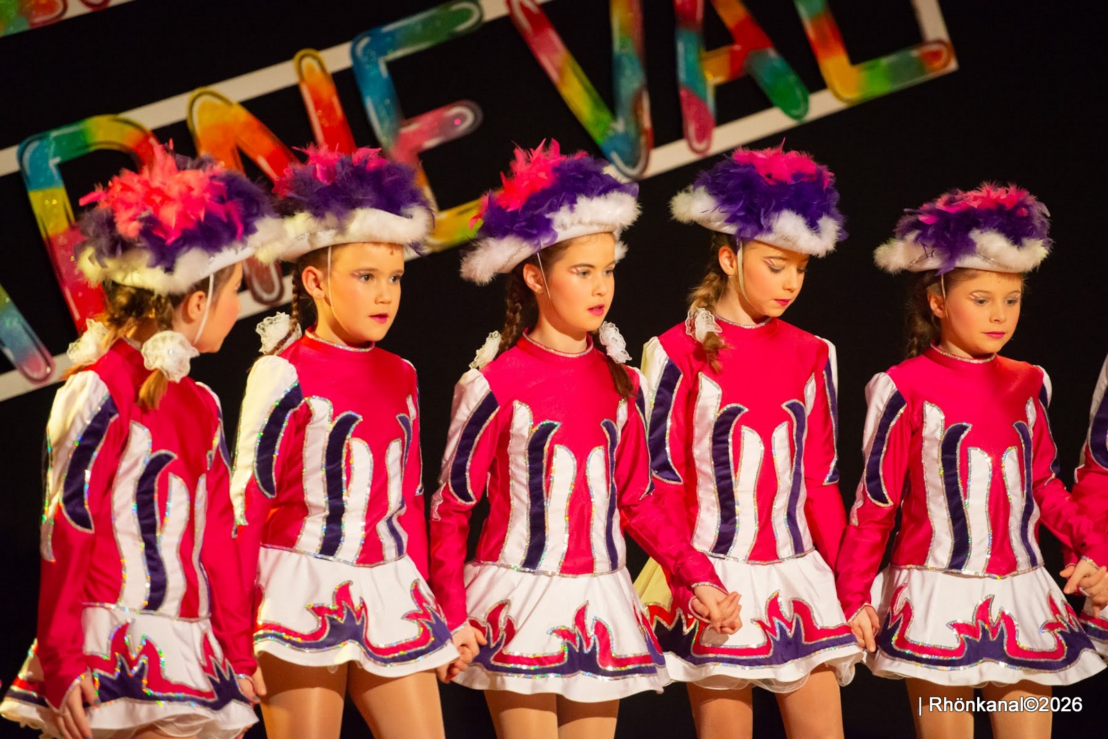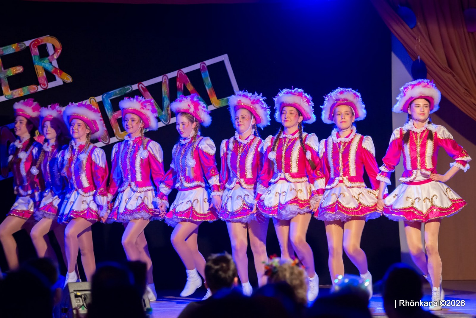Nahtlos ging es weiter mit dem närrischen Nachwuchs: Die kleine Garde wirbelte mit ihren 21 Tänzerinnen über die Bühne und zeigte mit Energie und strahlenden Gesichtern, dass die Zukunft des Karnevals bestens gesichert ist.