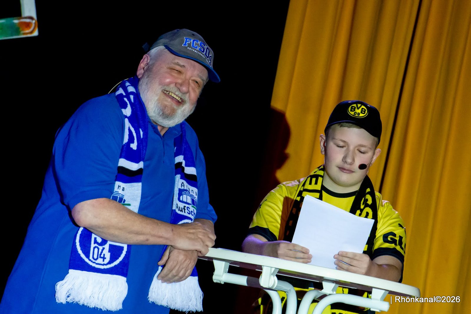 Für herzhafte Lacher sorgten anschließend Linus Roth und Karnevalsurgestein Uwe Mollerhenn, die sich als fußballbegeisterter Enkel und Opa einen urkomischen Schlagabtausch lieferten – ein Derby ganz eigener närrischer Art.