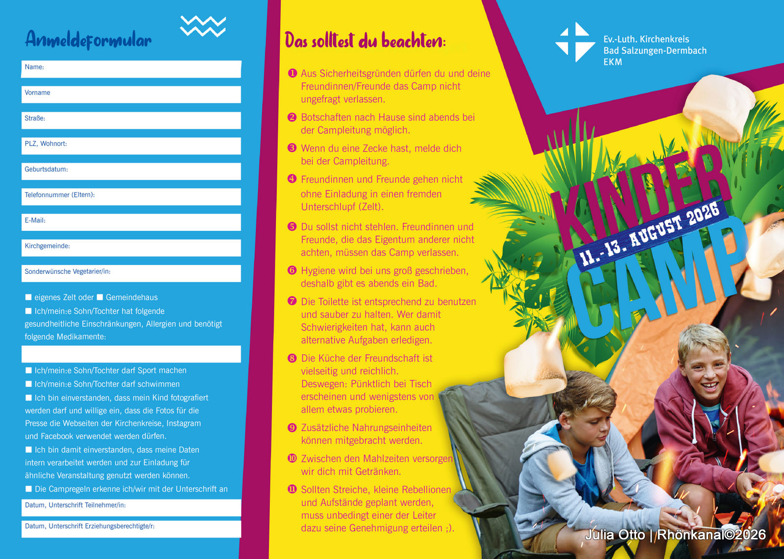 Fülle einfach das Anmeldeformular KinderCamp 2026 unter: www.kkbasa.de aus und sende es an: kindercamp.kkbasa@ekmd.de