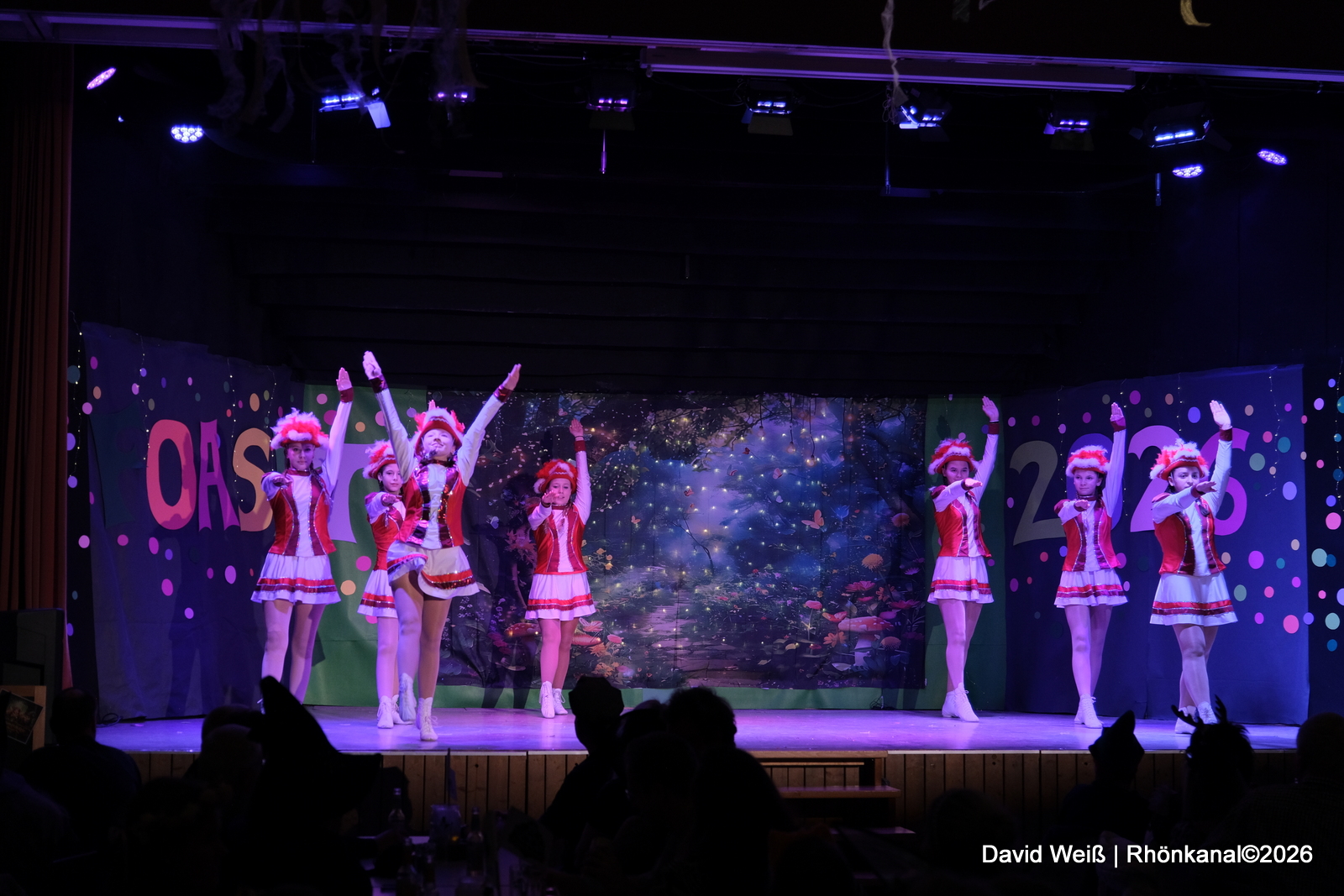 Die Elferratsgarde aus Hettenhausen bedankte sich beim Publikum im Saal: „Dass heute noch so aufmerksam zugehört wird, ist leider selten – Uttrichshausen sticht da ganz besonders heraus.“ Als Dank präsentierten sie ihr Können mit einem Tanzauftritt.