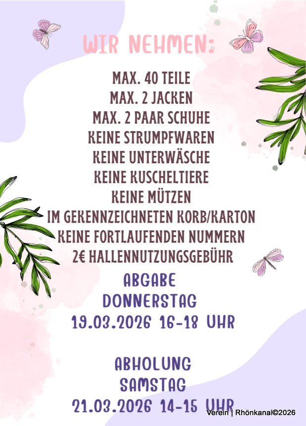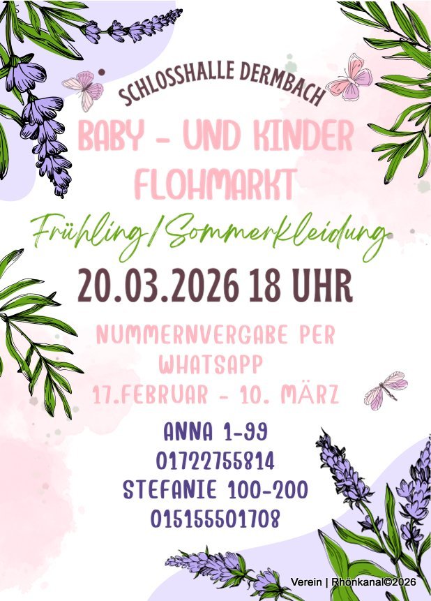 Der Frühling steht vor der Tür und damit die perfekte Gelegenheit zum Stöbern, Entdecken und Sparen. In der Schlosshalle Dermbach findet am Freitag, den 20. März 2026 ab 18 Uhr unser Baby- und Kinderflohmarkt für Frühling- und Sommerkleidung statt.
