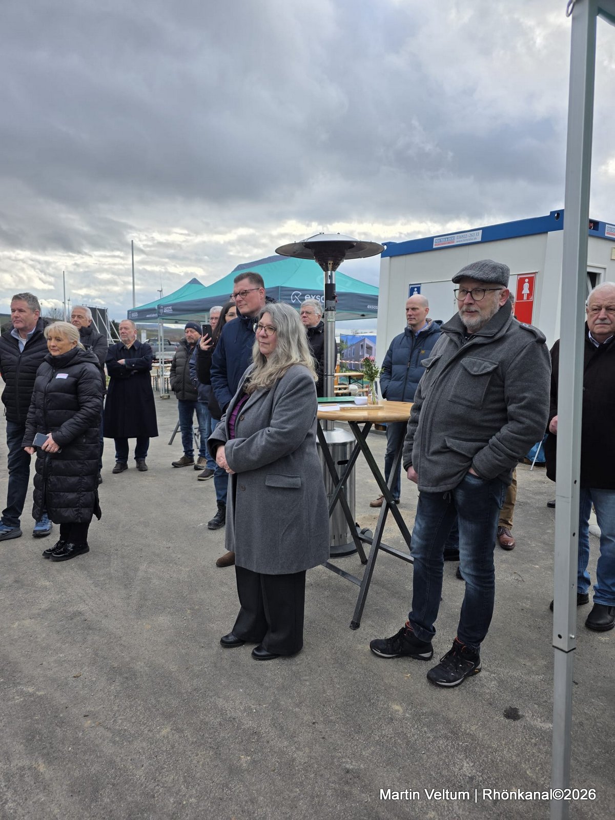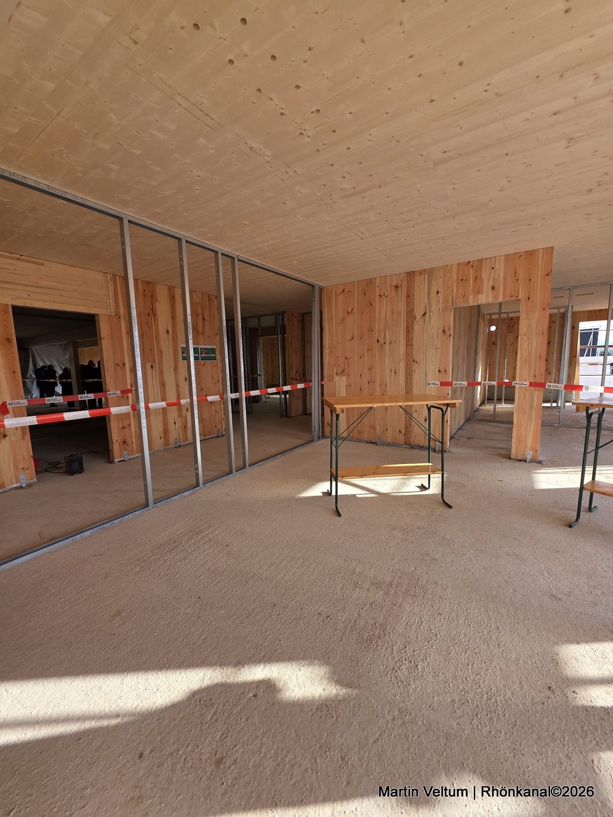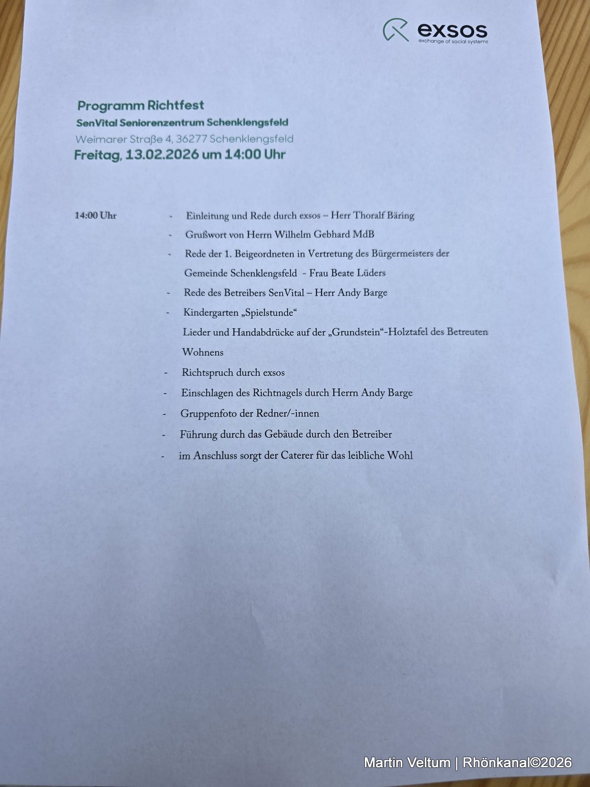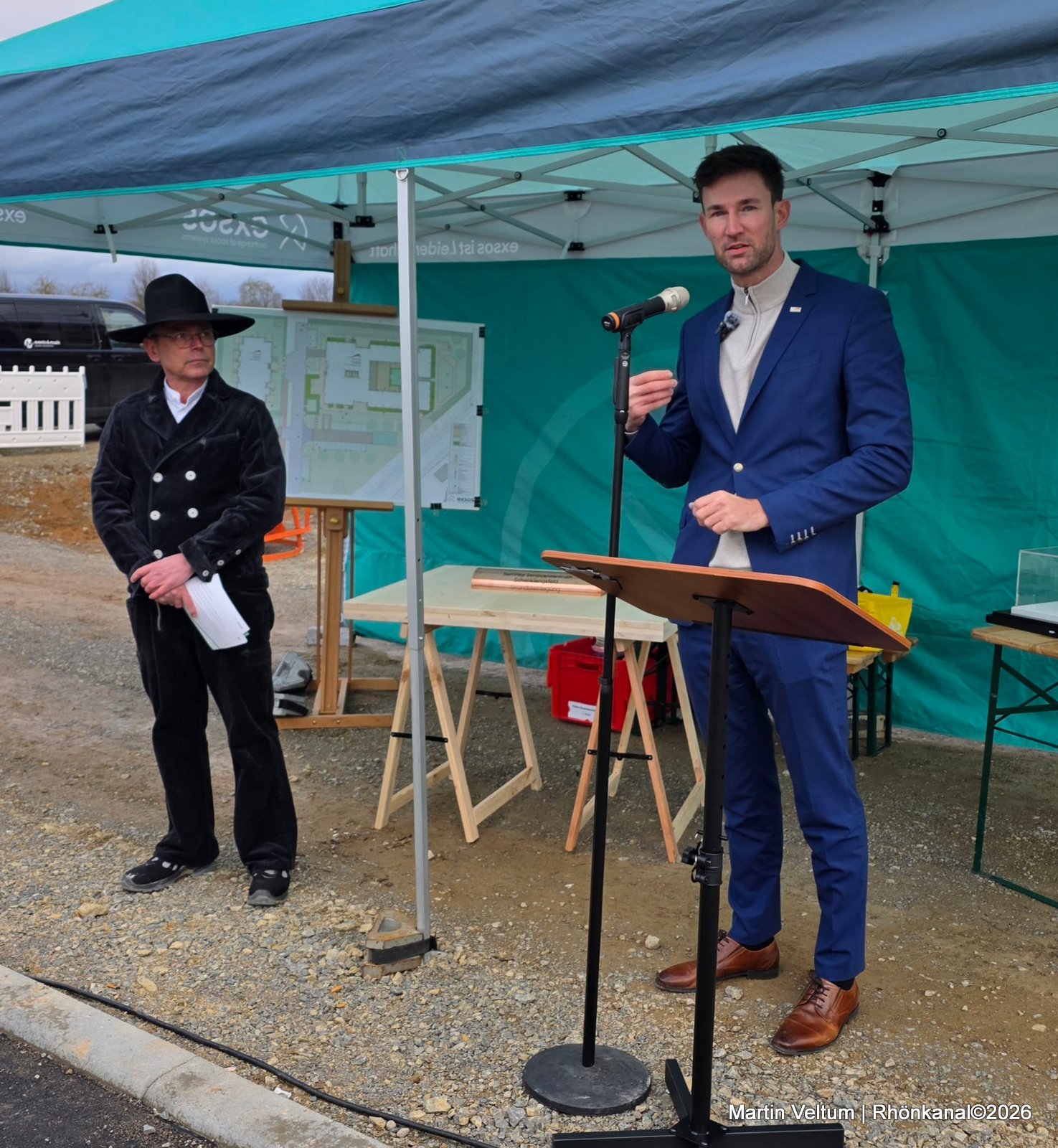 In seiner Begrüßung trat Thoralf Bäring, Geschäftsführer der exsos GmbH, in traditioneller Zimmermannstracht auf und würdigte die Arbeit aller Beteiligten: „Als gelernter Zimmermann weiß ich, was hier täglich geleistet wird. Wichtig ist mir vor allem: Der Bau verläuft unfallfrei, planmäßig und im Zeitrahmen. Genau so soll es sein.“