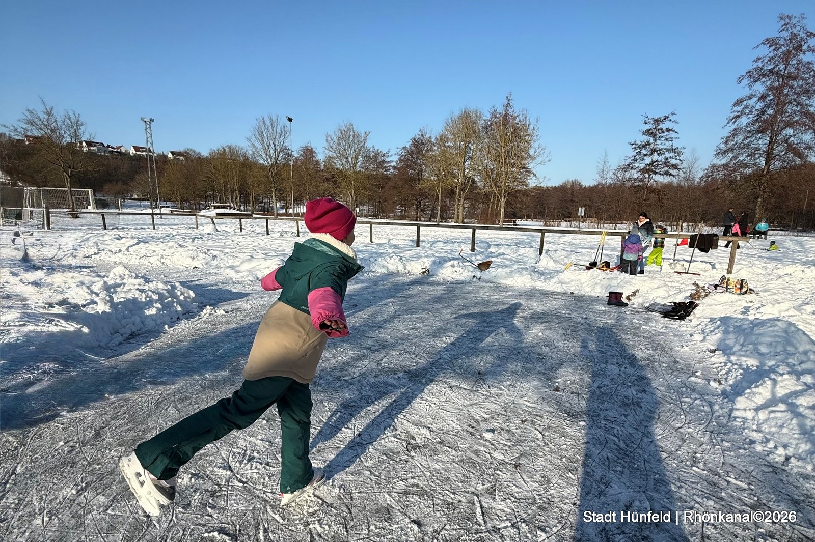 Viele Winterbegeisterte nutzten die Gelegenheit und genossen seitdem die winterliche Atmosphäre auf dem Eis. „Wir freuen uns sehr, dass so viele Menschen in den vergangenen Tagen Spaß auf der Eisfläche hatten“, sagt Bürgermeister Benjamin Tschesnok.
