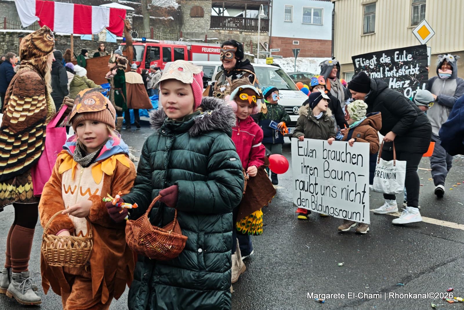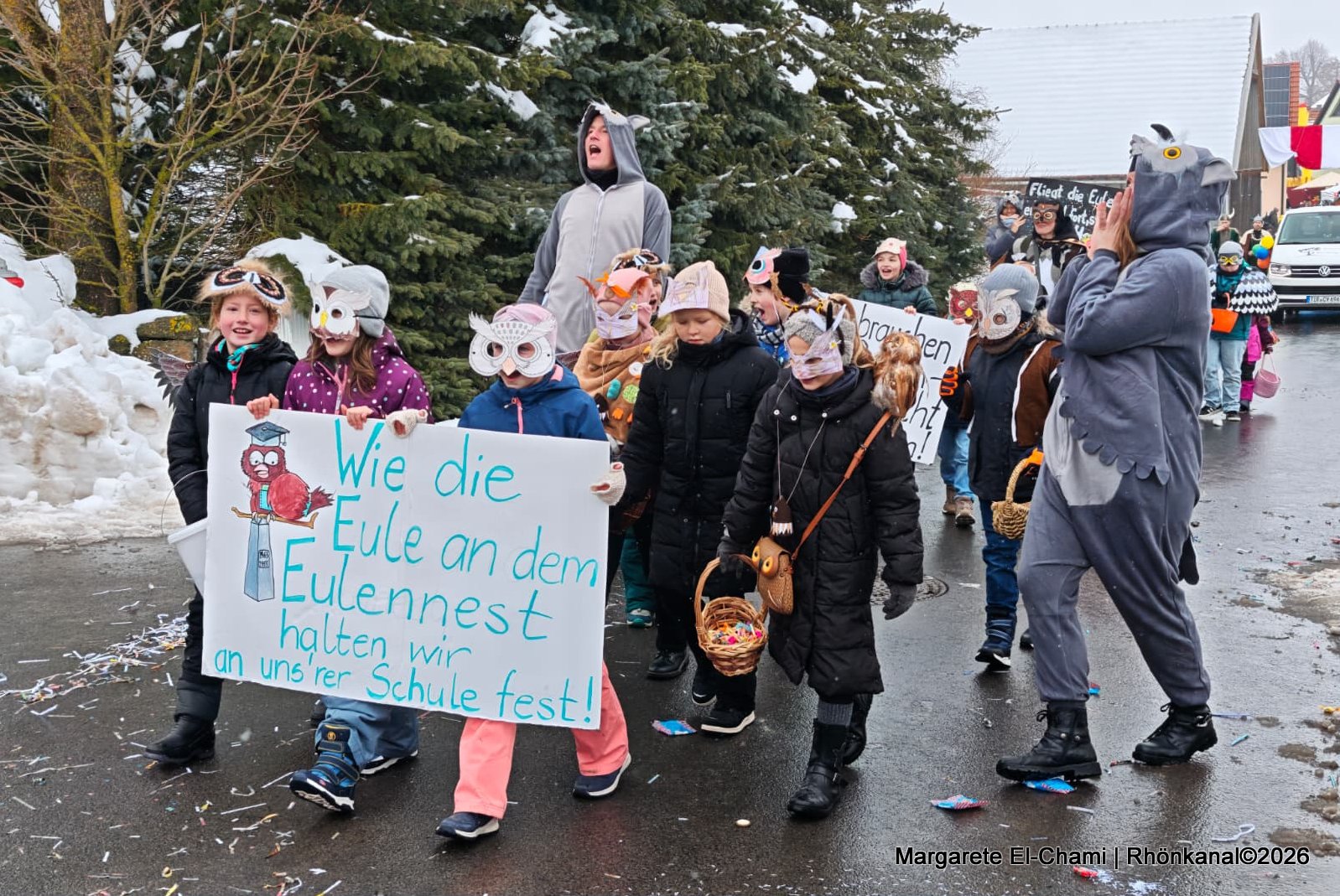 Trotz frostigem Winterwetter stapften die kleinen Karnevalisten begeistert durchs Dorf und riefen eifrig die verschiedenen Schlachtrufe der umliegenden Karnevalsclubs mit.