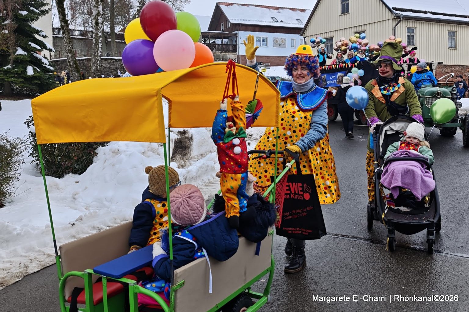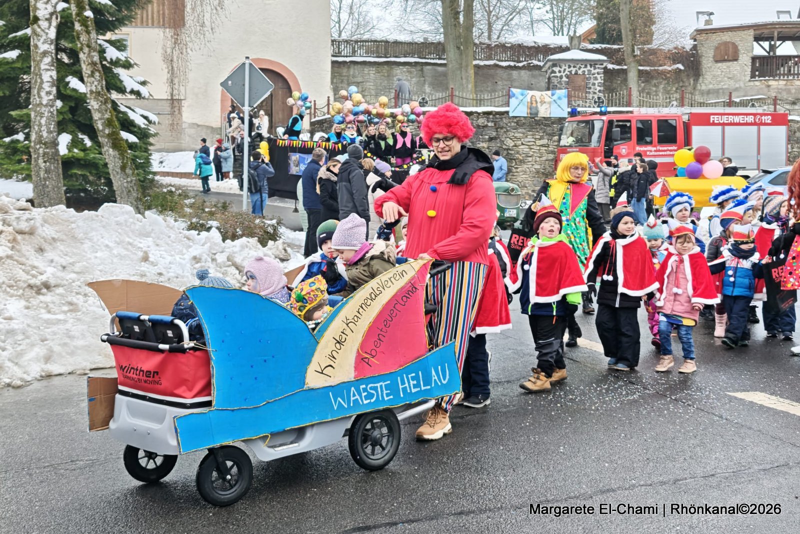 „Waeste Hellau!“ schallte es am Sonntag lautstark von einem Tross geschmückter Wagen durchs Dorf und ganz vorne mit dabei, der DRK-Kindergarten „Abenteuerland“.
