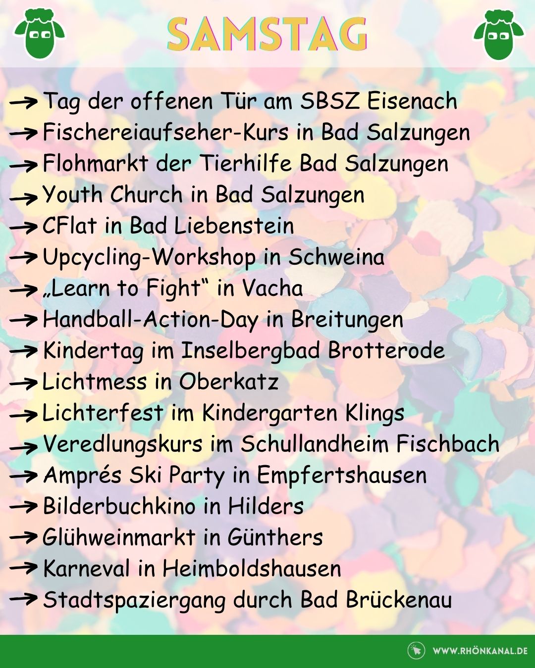 Flohmärkte, Konzerte und Partys finden natürlich ebenso statt wie Lesungen und Kinderfeste. Sportlich wird's unter anderem in Vacha oder in Breitungen.