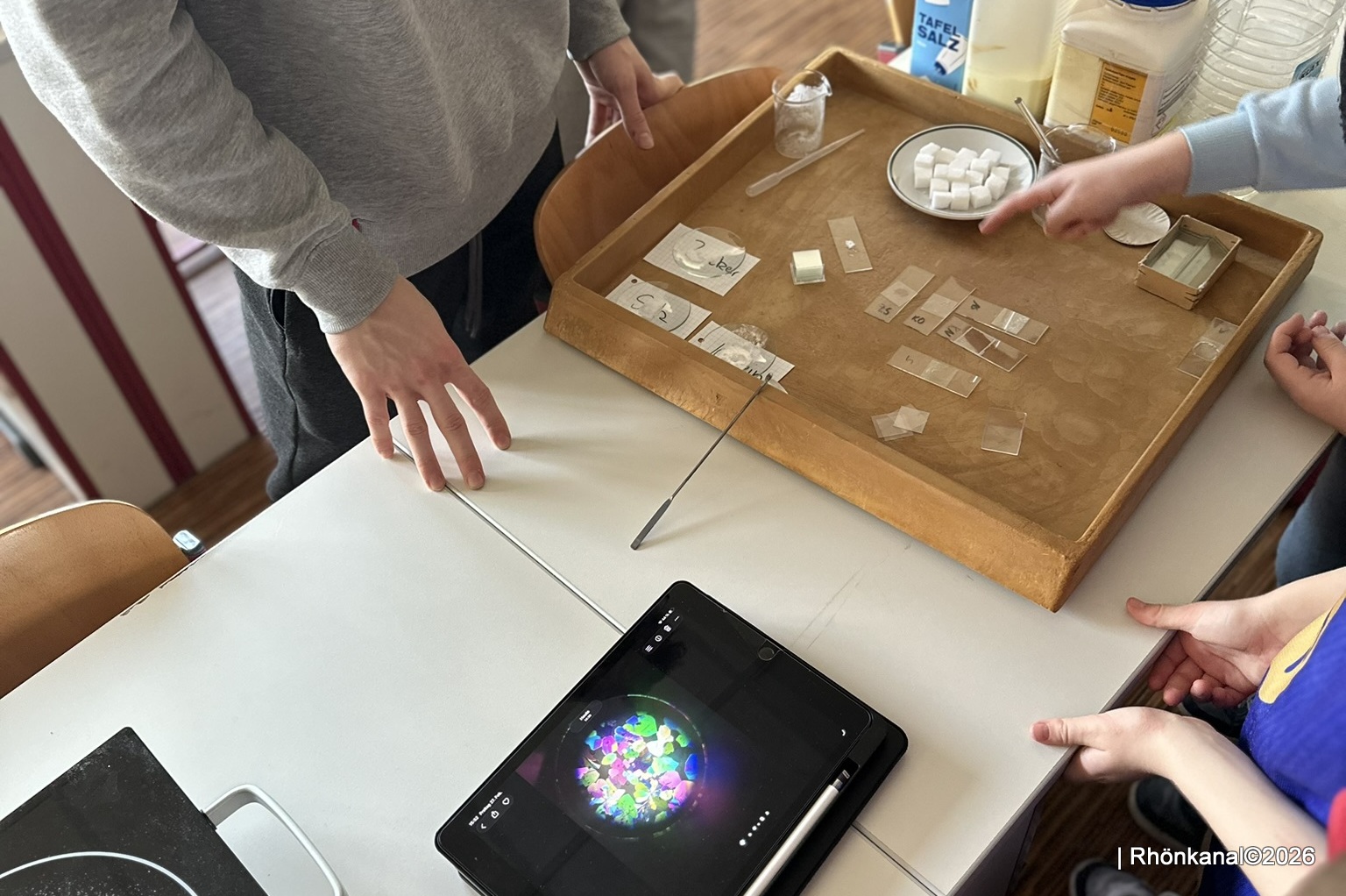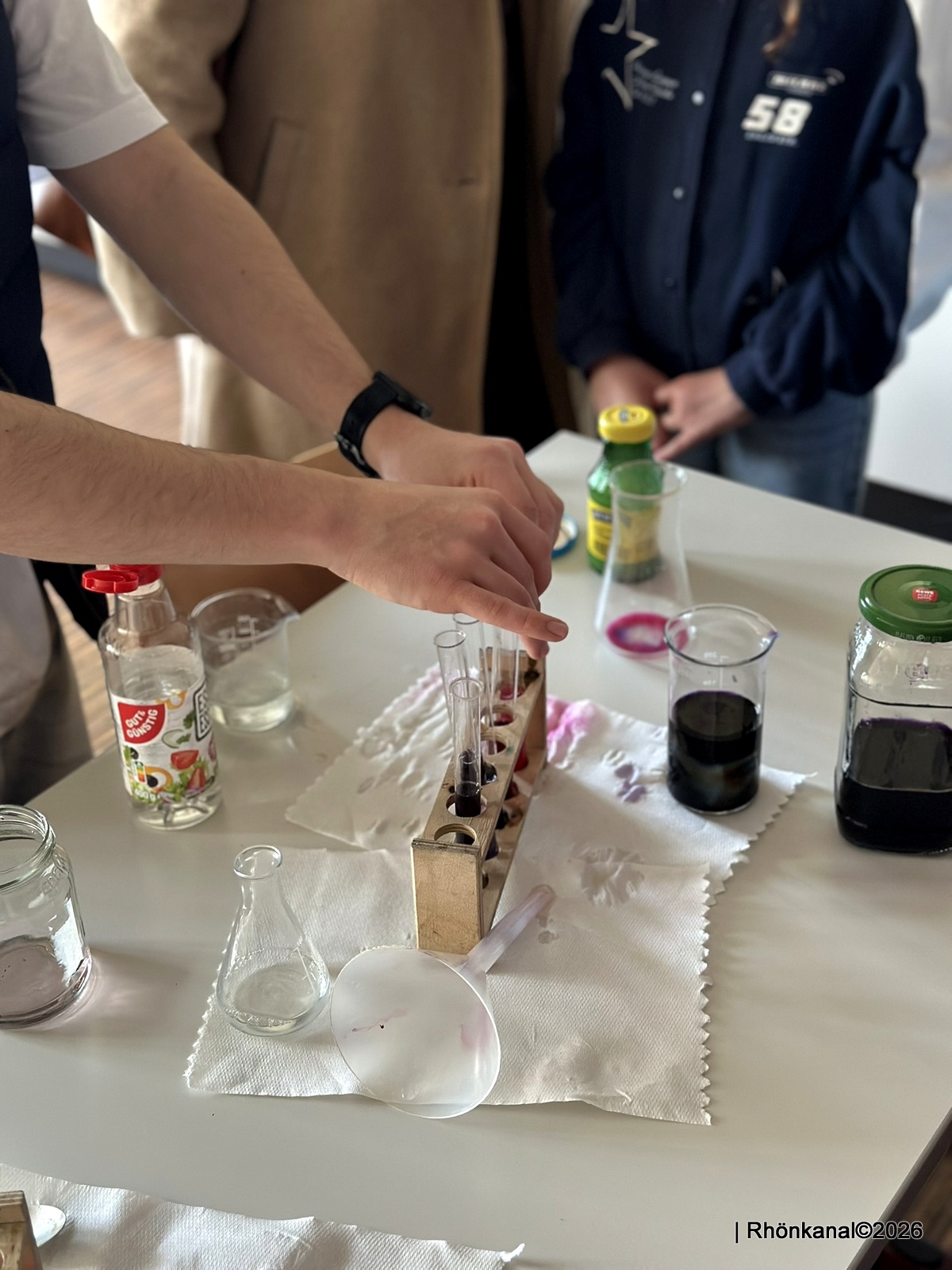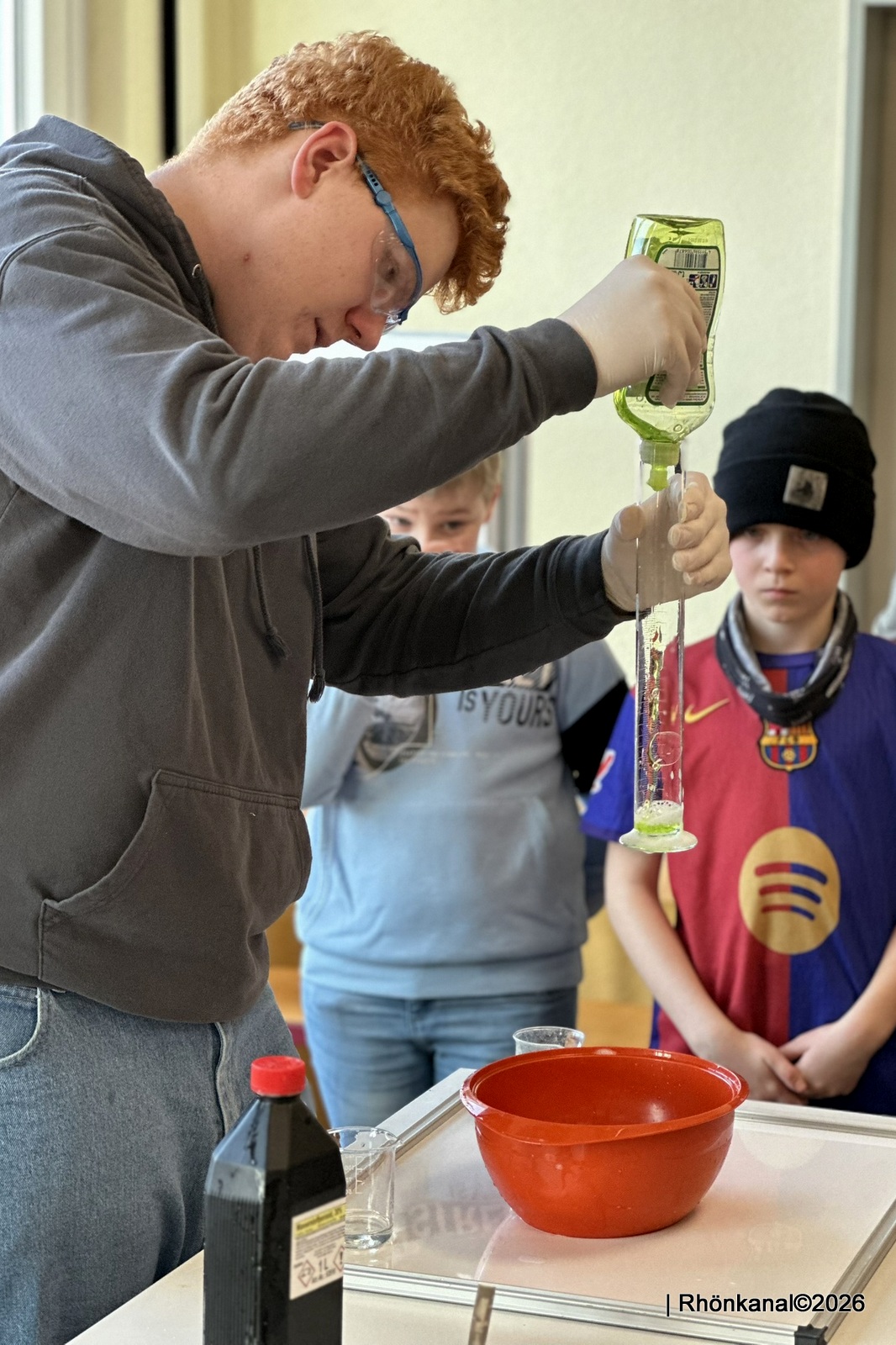 Die Medienbildung stellt am Rhöngymnasium einen wichtigen Punkt im Schulalltag dar, so wurde auch die Arbeit mit dem „Greenscreen“ vorgestellt. Chemische und physikalische Experimente versetzten Klein und Groß ins Staunen.