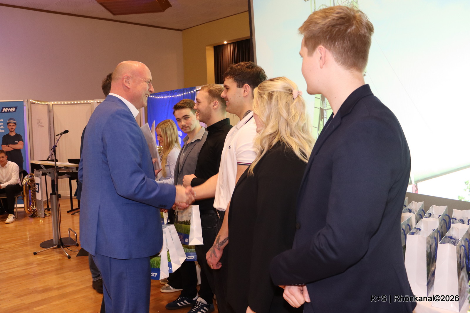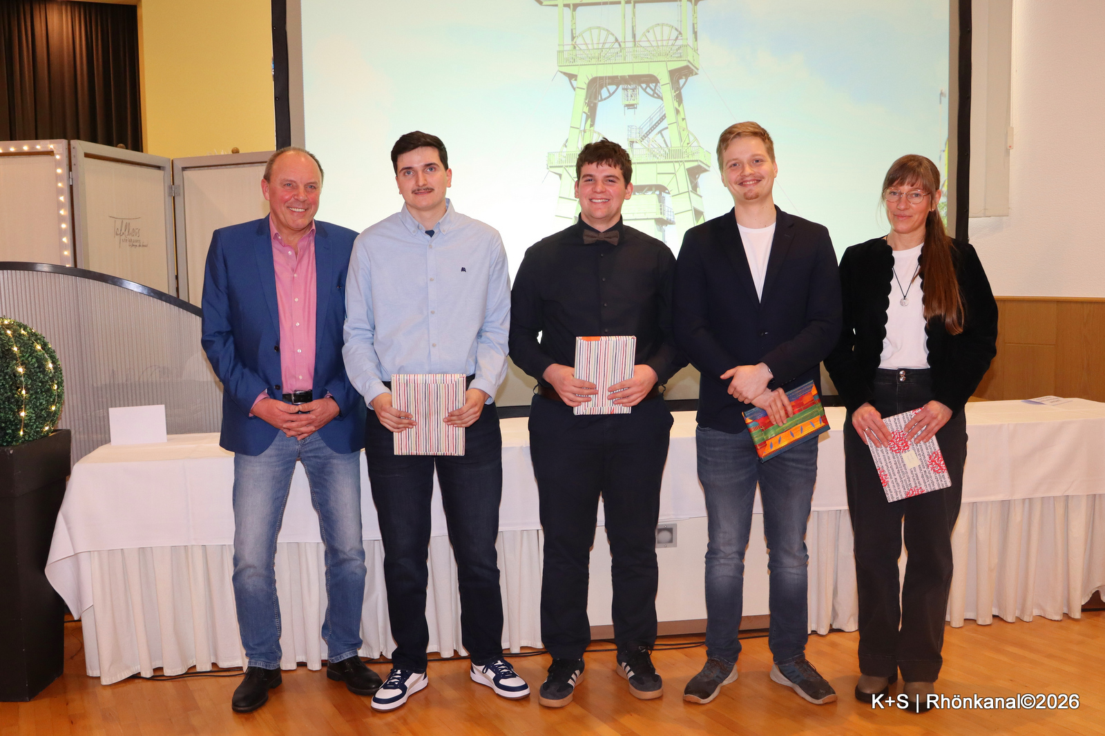 Als besondere Anerkennung für ihr Engagement überreichte Warnecke die Stracke dieses Mal an die Moderatoren der Veranstaltung Nina Müller (Bergbautechnologin im zweiten Ausbildungsjahr) und Philipp Fröbel (Industriemechaniker im ersten Ausbildungsjahr) sowie an das Musik-Ensemble des Gymnasiums Vacha, das die Freisprechung feierlich umrahmte.