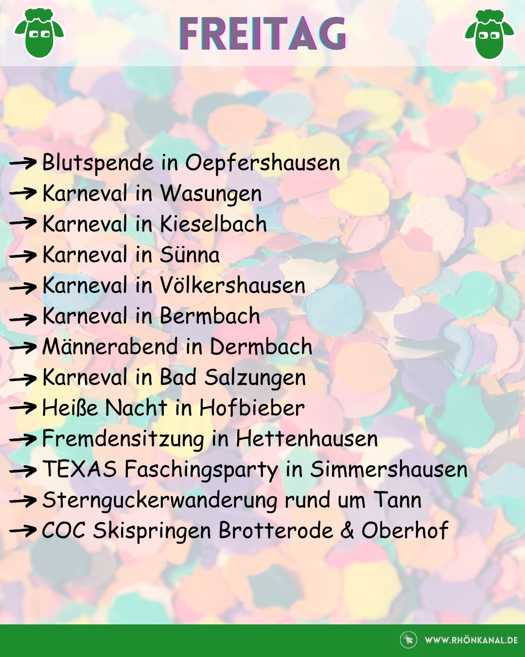 Egal ob Valentinstag oder Karneval: Am Wochenende wird in der Rhön wieder fleißig gefeiert! Die Karnevalshochburgen präsentieren ein paar bunte Programmabende und farbenfrohe Fastnachtumzüge.