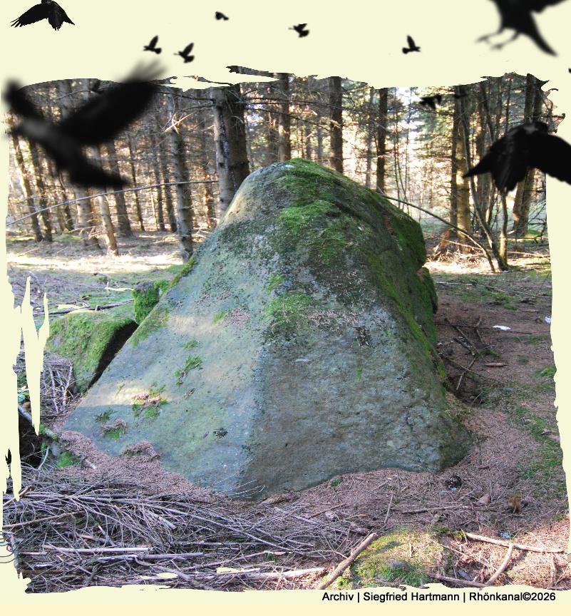 Der Wind pfeift unbarmherzig über die Frankenheimer Höhe. Hier oben, unweit des höchsten Dorfes der Rhön, wo die Natur ebenso rau wie atemberaubend ist, ruht ein stummer Zeuge alter Ängste: Ein gewaltiger Basaltfindling, dunkel und von Flechten überzogen.