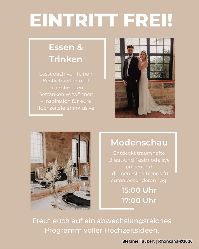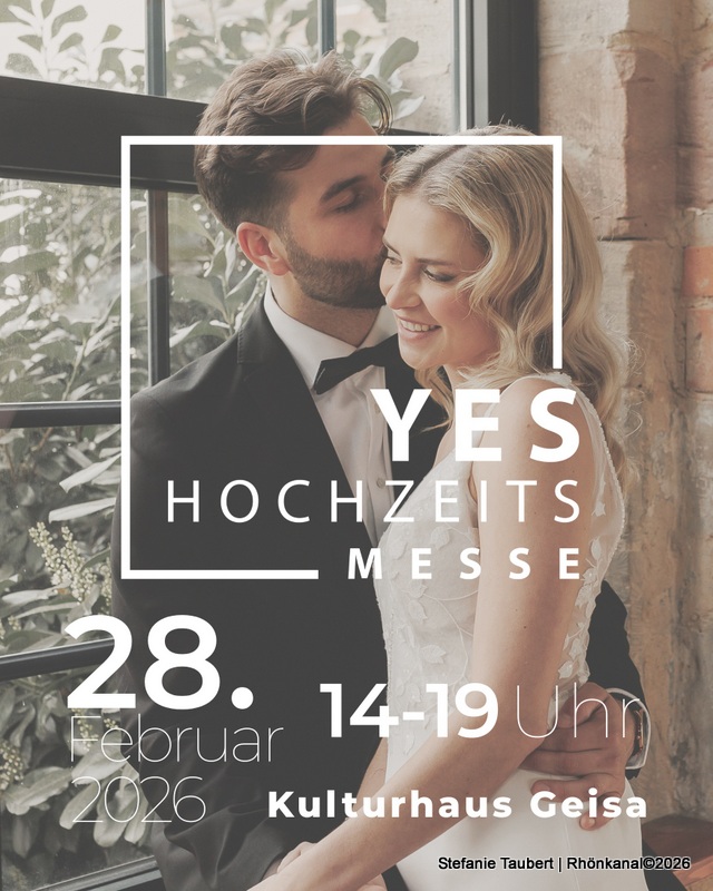 Am Samstag, den 28. Februar 2026, öffnet das Kulturhaus Geisa von 14 bis 19 Uhr seine Türen für die erste Hochzeitsmesse der Rhön. Die YES Hochzeitsmesse richtet sich an alle, die sich auf ihre Hochzeit vorbereiten oder sich einfach von schönen Ideen rund um das Thema Heiraten inspirieren lassen möchten.