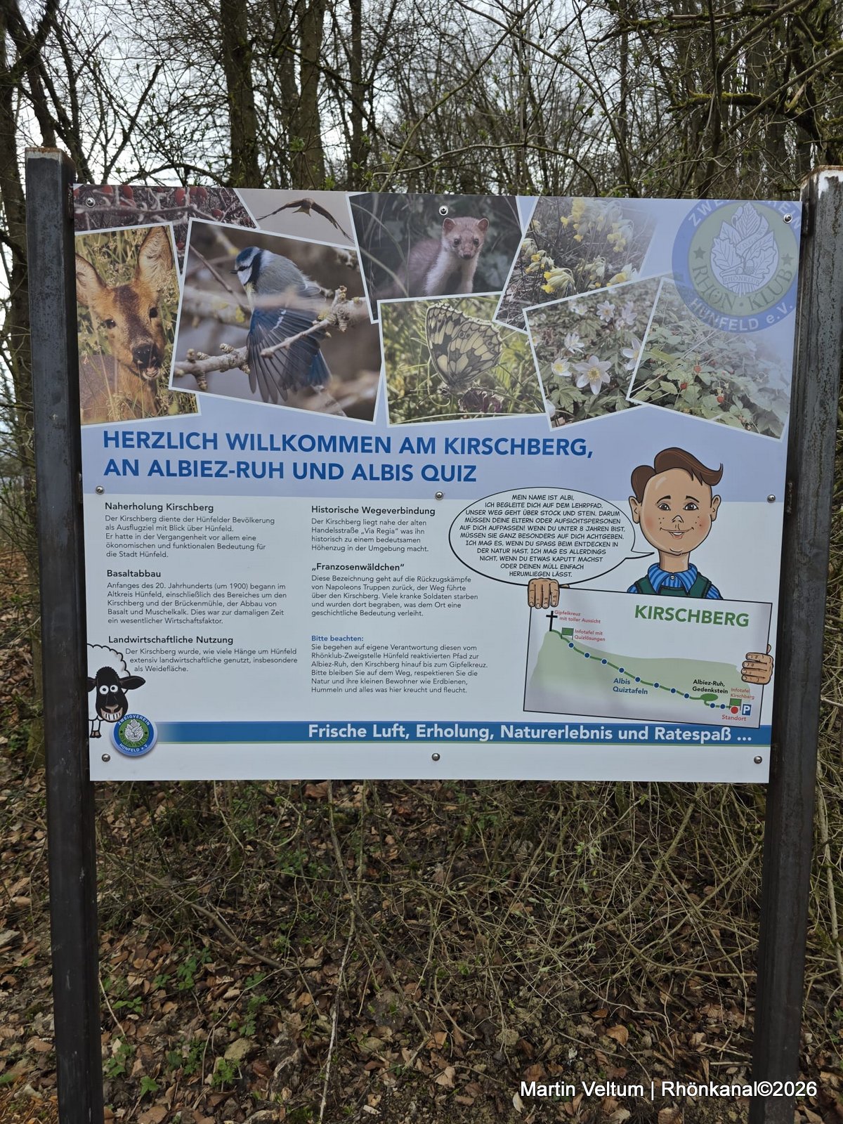 Unter der Leitung der Vorsitzenden Marita Weisz wurde das Gelände nicht nur hergerichtet, sondern auch um einen Wander- und Lehrpfad ergänzt. Zehn Informationstafeln vermitteln auf dem Weg zum Kirschberg Wissenswertes über die heimische Tier- und Pflanzenwelt.