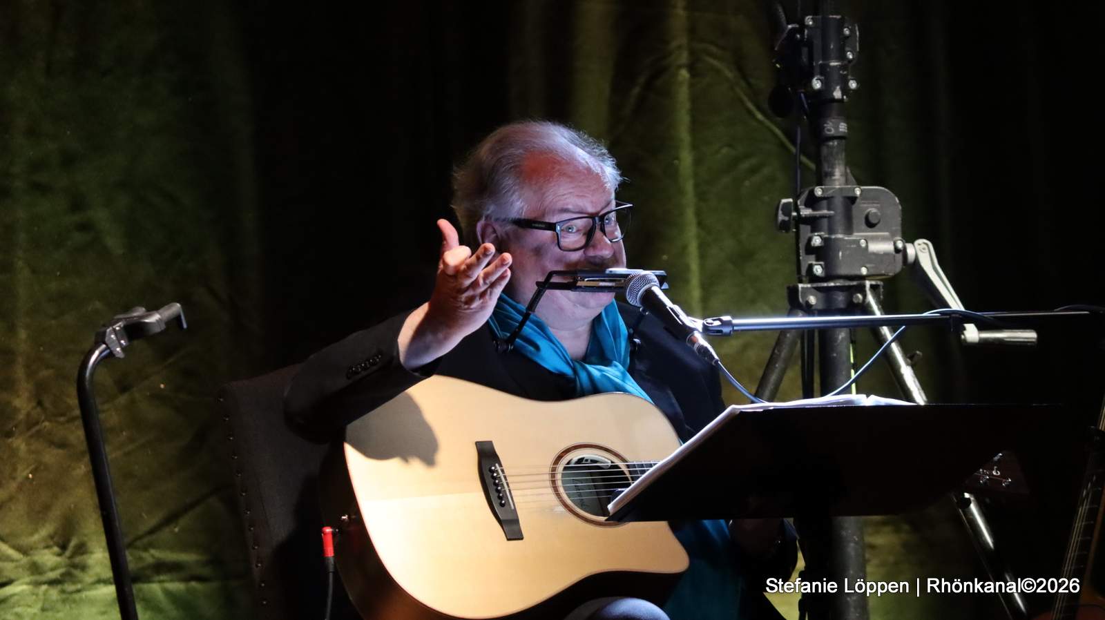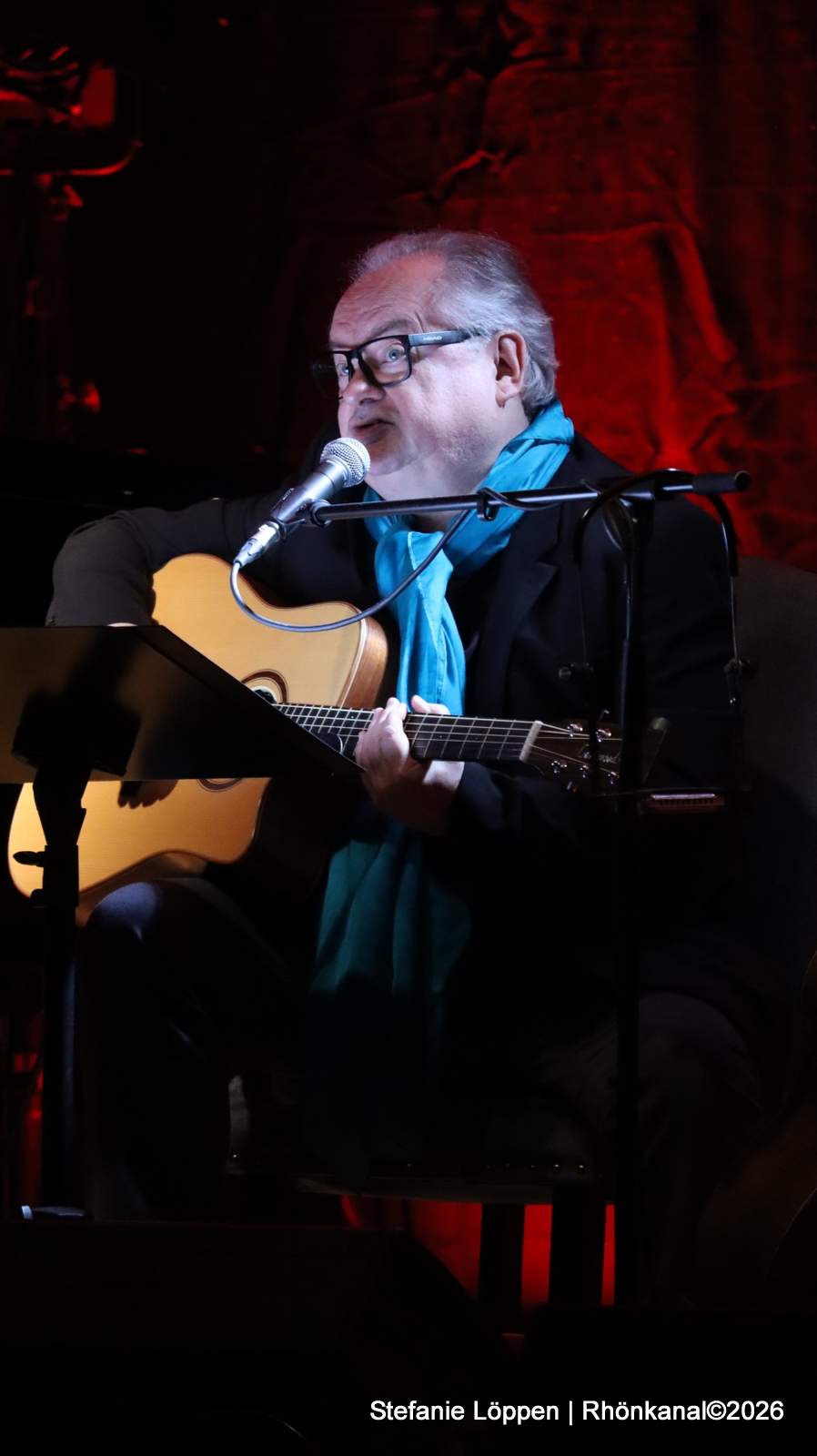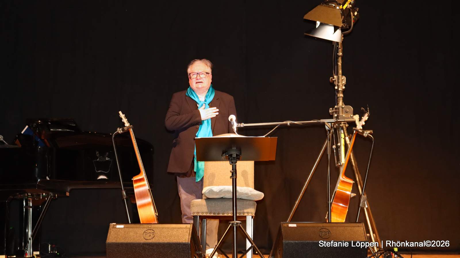 Schon beim zweiten Lied löst sich die anfängliche Zurückhaltung. Erste Stimmen aus dem Publikum mischen sich ein, vorsichtig zunächst, dann immer sicherer. Kunze registriert das – und man merkt ihm an, dass ihn genau solche Momente erreichen. Die direkte Resonanz, gerade in einem kleinen Ort wie Frankenheim, scheint ihm sichtlich etwas zu bedeuten.