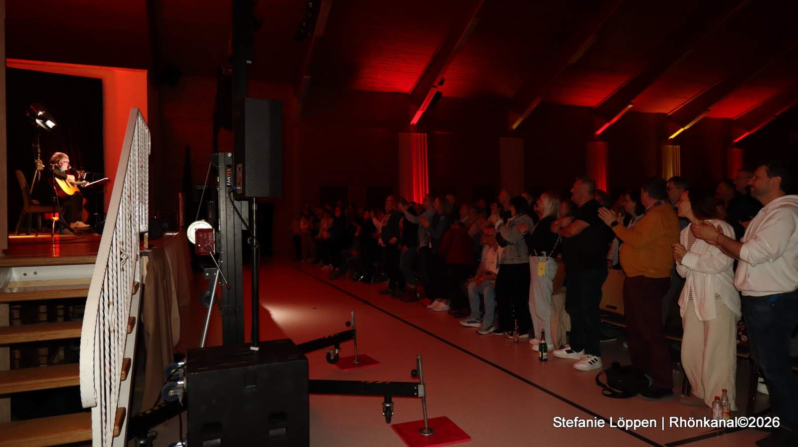 In diesen ruhigeren Passagen wird es still in der Hochrhönhalle. Zuhören ist gefragt, und das Publikum lässt sich darauf ein. Kaum ein Rascheln, kaum Bewegung. Doch diese Konzentration kippt, sobald bekannte Melodien erklingen. Dann wird mitgesungen, stellenweise sogar getanzt. Gegen Ende des Abends verdichtet sich die Stimmung spürbar: Immer mehr Besucher stehen auf, der Applaus wird länger, intensiver, persönlicher.
